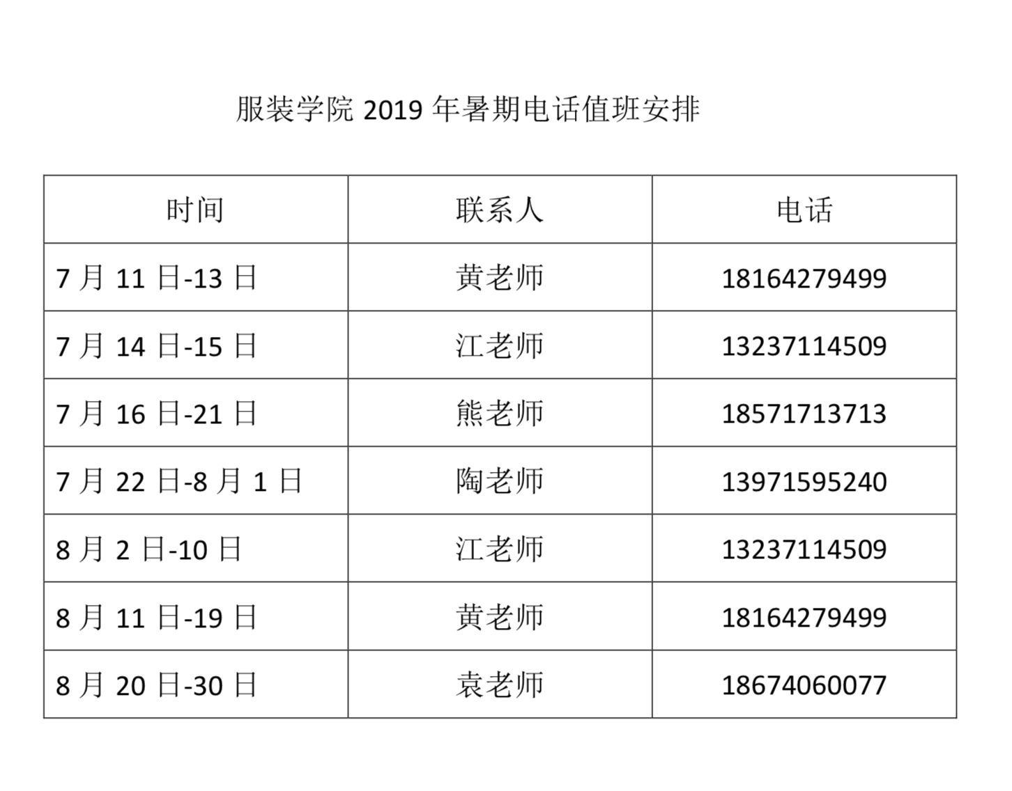 博彩投注 2019年暑期电话值班安排