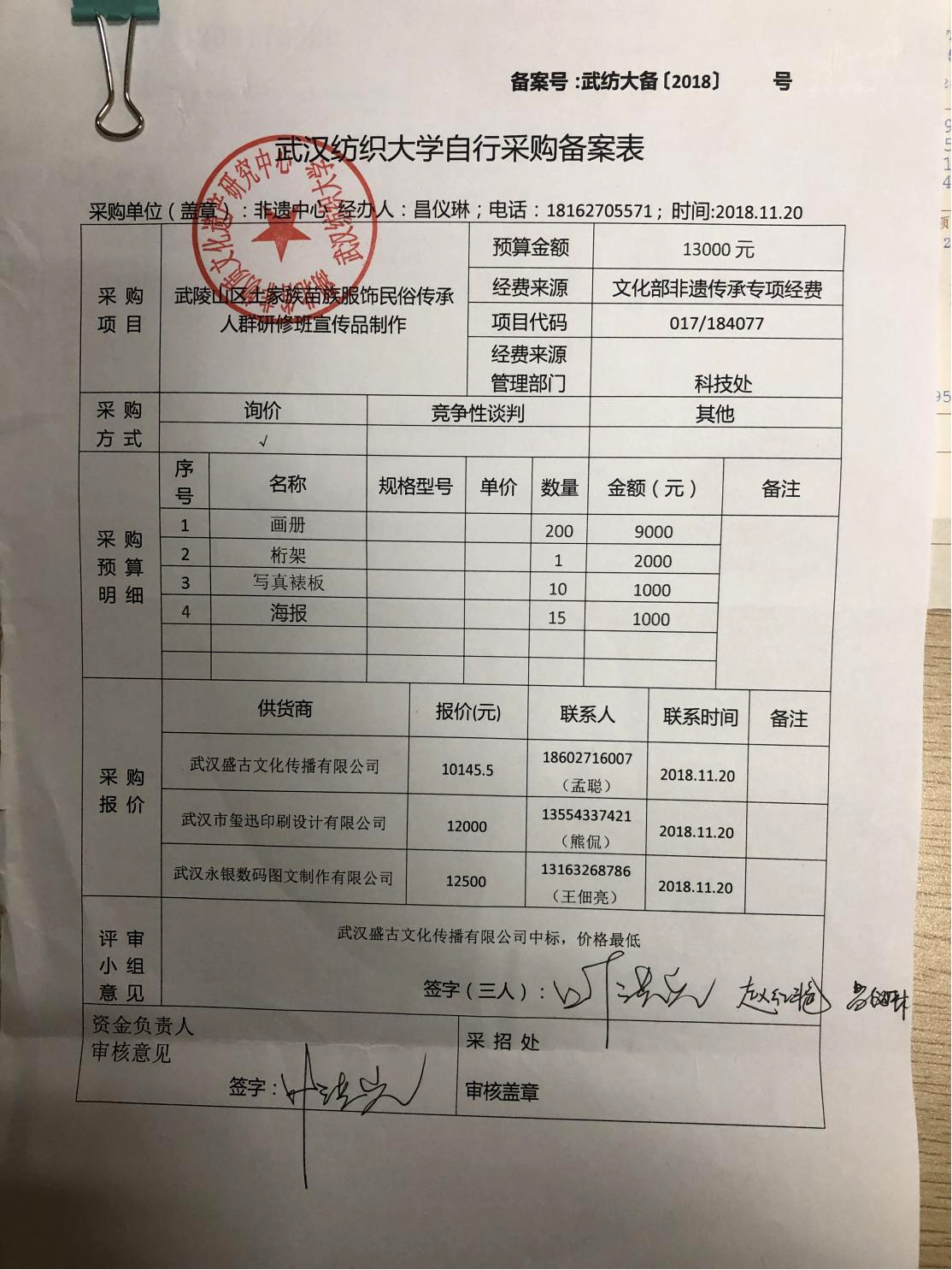武陵山区土家族苗族服饰民俗传承人群研修班宣传品制作采购项目备案公示
