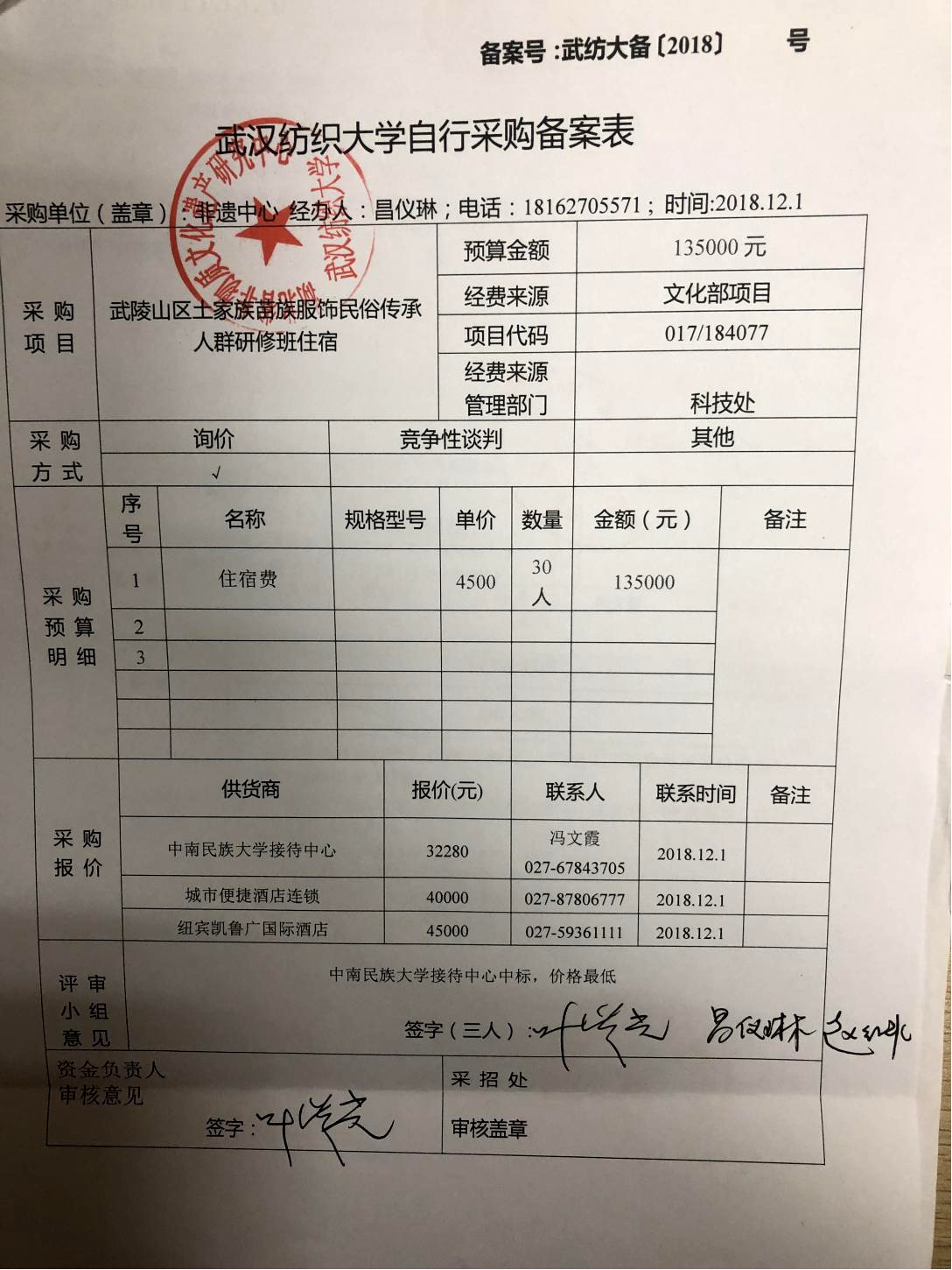 武陵山区土家族苗族服饰民俗传承人群研修班住宿项目采购备案公示