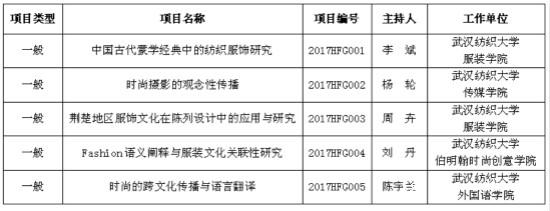 湖北省服饰艺术与文化研究中心2017年度项目立项公示