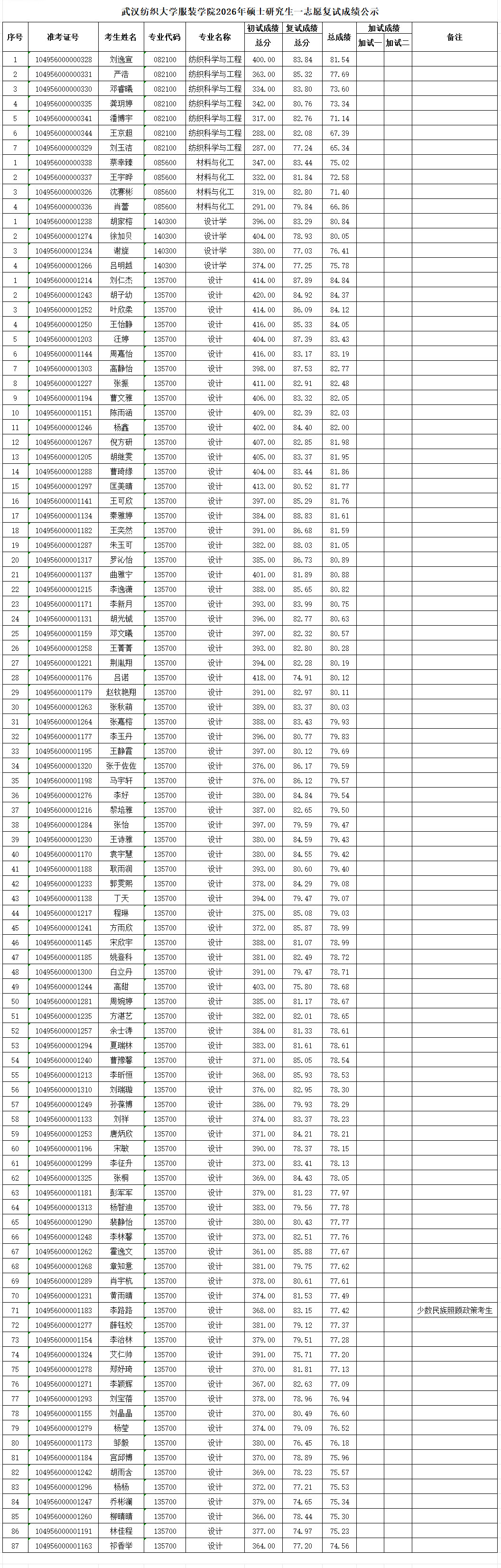 十大博彩投注网站 2026年硕士研究生复试成绩公示(一志愿)