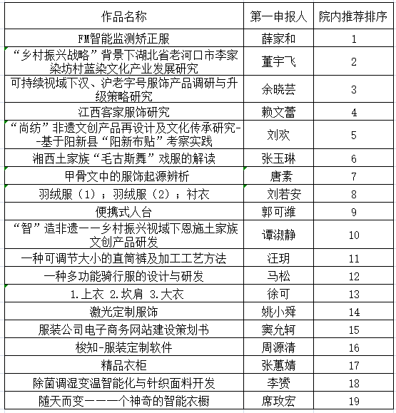 根据各项目团队申报、学院初审、现场答辩,现将拟推荐参加第十七届“挑战杯”大学生课外学术科技作品竞赛校内选拔赛的项目(第一申报人)及排序公示如下: