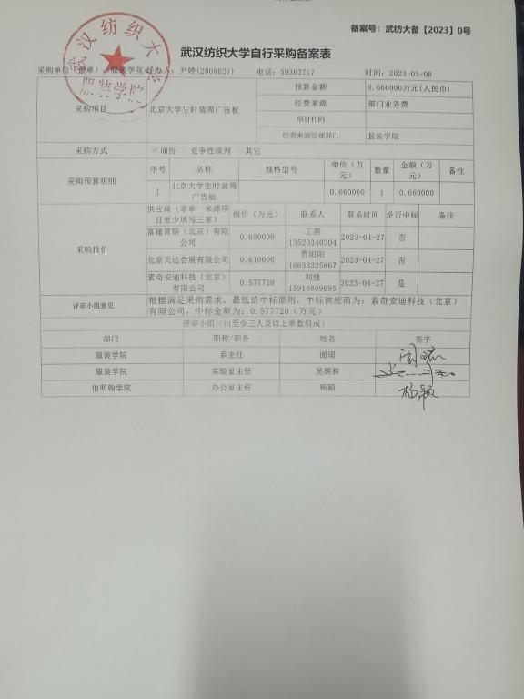 北京大学生时装周广告板采购公示