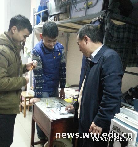 为加强学校党建和群众工作,形成“两访两创”工作长效机制,2014年下半年,学校大力实施“安全文明宿舍建设工程”,推行机关中层以上干部对口联系学生宿舍制度,要求机关中层以上干部原则上每人至少联系一间2014级新生宿舍,每月走访联系宿舍不得少于一次,每学期与所联系宿舍学生进行一次谈心活动,重点关注联系宿舍中的重点学生。