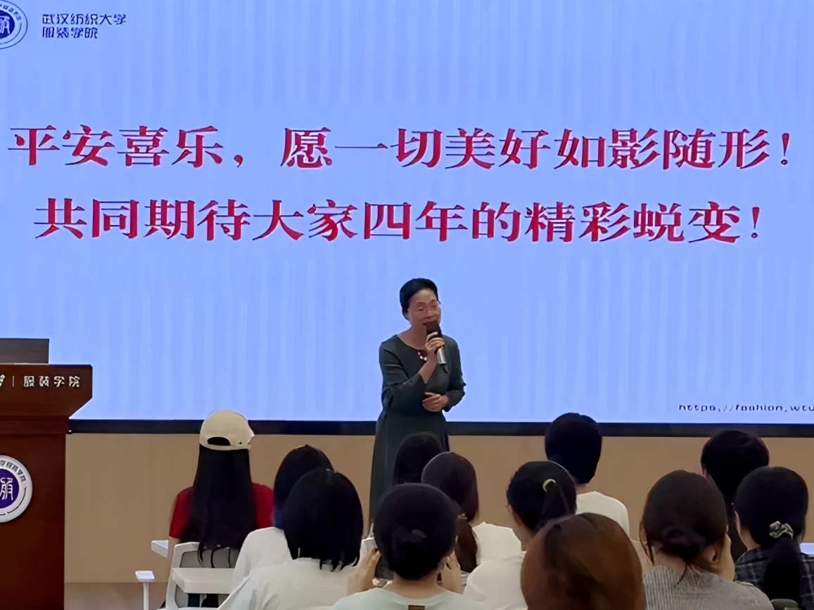 作为学院的领航者,陶辉院长充满自豪地向新生们展示了学校和学院的辉煌成就:从研制嫦娥六号月面展示国旗,到连续荣获中国时装设计“新人奖”;从拥有纺织科学与工程一流学科,到构建本硕博贯通培养体系。她深情地说:“你们不仅是学院的新成员,更是这份荣誉的传承者和新发展使命的担当者。”院长鼓励新生将个人成长融入学院发展,在传统服饰创新、可持续时尚、智能穿戴等前沿领域贡献力量,成为懂设计、通技术、会管理、善传播的复合型人才。