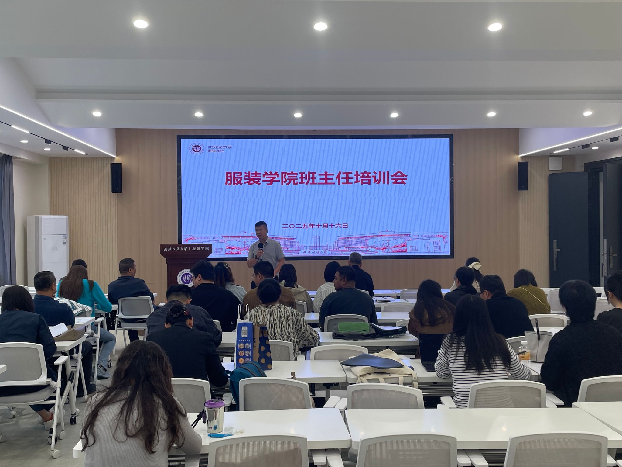 在服装艺术楼二楼报告厅隆重举办新学期班主任经验交流暨工作培训沙龙。学院全体领导班子成员,学院全体班主任、各年级辅导员共同参与,本次培训会为全体班主任下发了《博彩投注