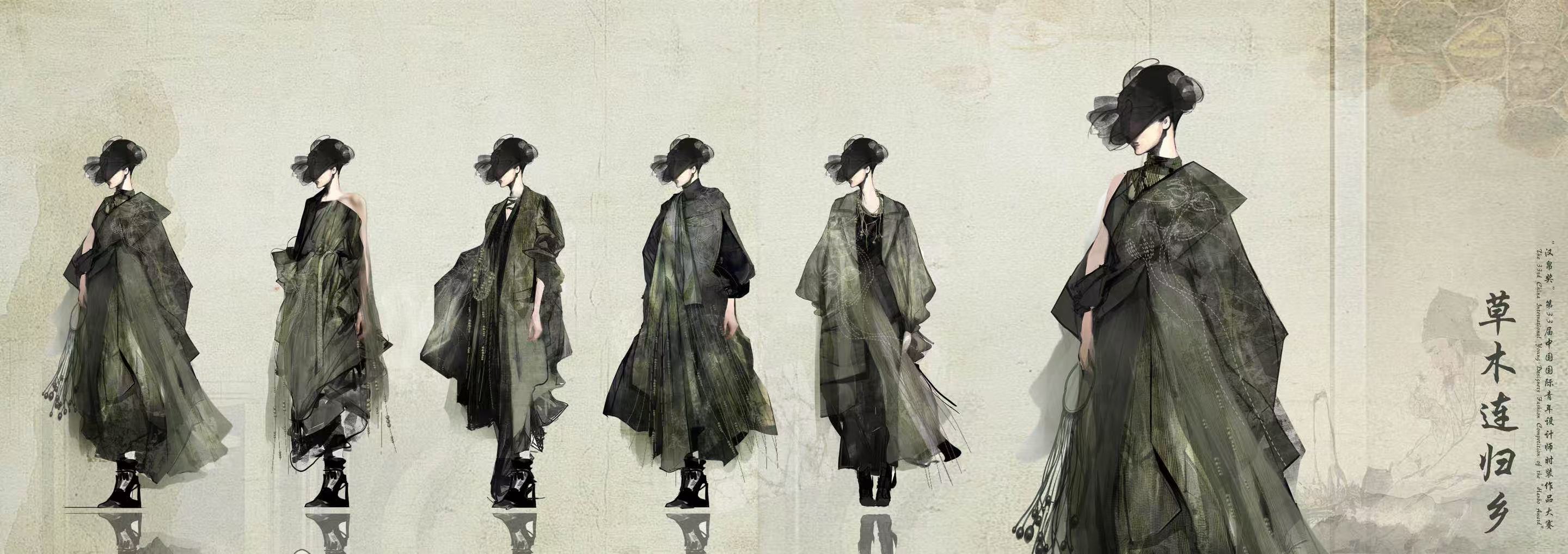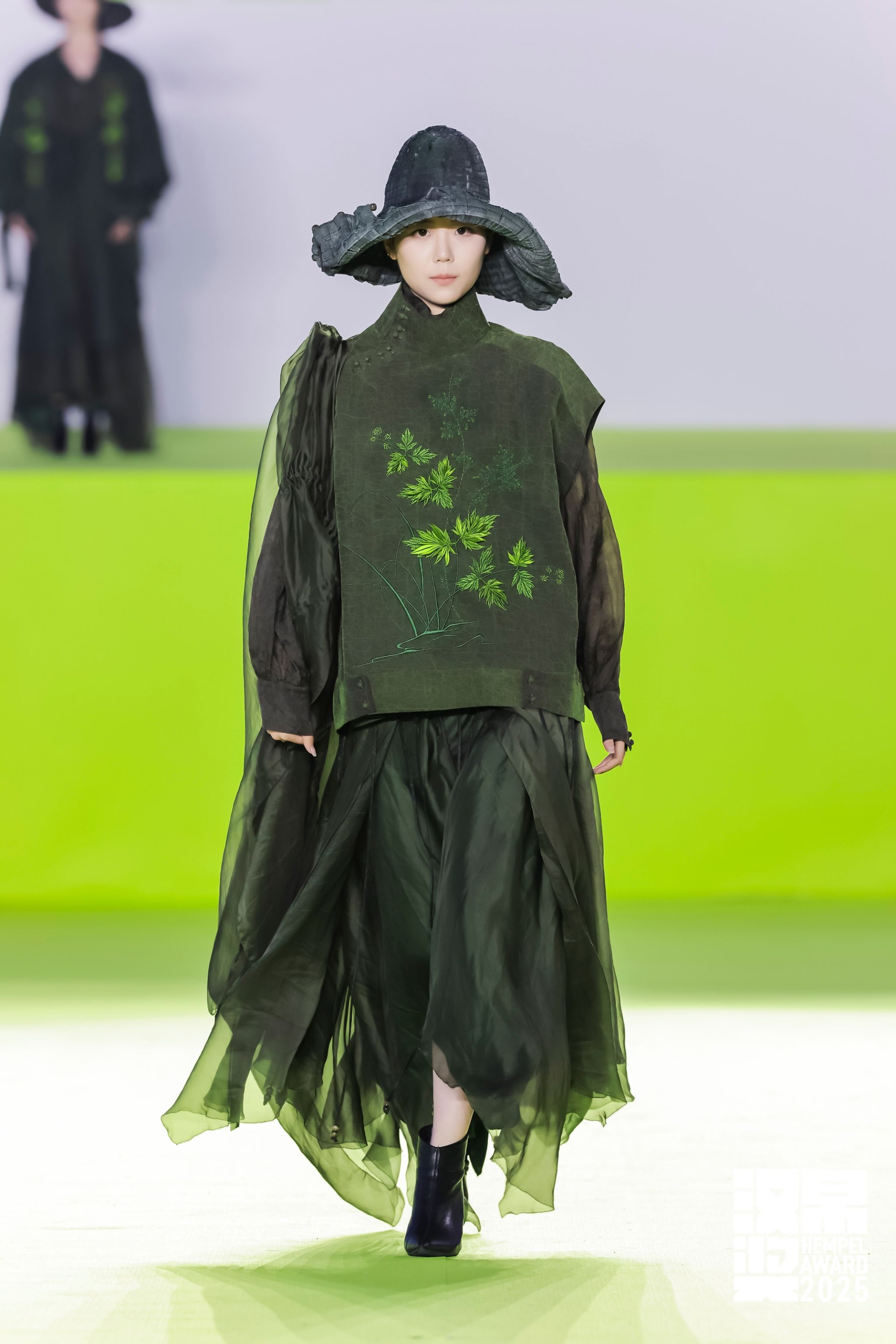 经过大赛专家委员会评审并报组委会审议通过,最终结果揭晓。在校2024级研究生杨诗琳取得佳绩,作品《草木连归乡》荣获优秀奖。该系列服装采用草木染工艺,将非遗缠花工艺与艾草形态巧妙融合,用缠花精细勾勒艾草模样,让传统手工艺鲜活呈现;再以非遗楚香珠点缀其间,增添灵动与文化底蕴。
