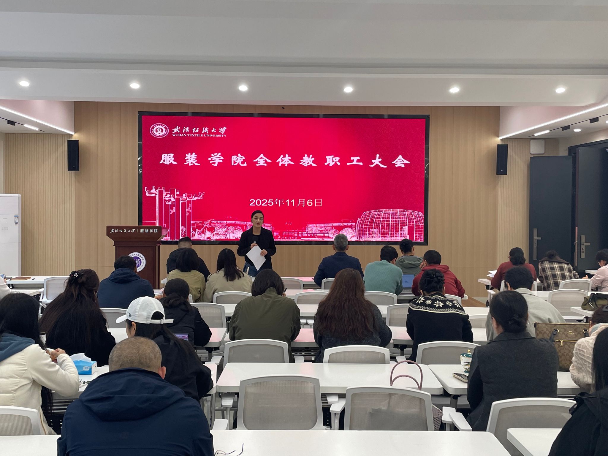 院长陶辉全面通报了学校及学院下一步重点工作安排。她首先传达了学校近期会议精神,介绍了学校 "双一流" 建设的最新部署与发展要求,强调全院教职工要主动对接学校发展战略,立足岗位建功立业。针对第三届时尚与可持续发展国际会议,陶院长总结了会议取得的实际效益与广泛影响力,指出要以此次会议为契机,深化国际交流合作,拓展办学资源。在职称评审与教学成果奖申报工作上,她要求严格按照评审标准与程序推进,确保公平公正公开,同时鼓励符合条件的教师积极申报,充分展现学院教学科研成果。陶院长还通报了近期研究生报名情况,分析了当前就业形势,并着重强调,就业质量不仅是人才培养成效的重要体现,更是研究生培养评估与博士点验收的关键检查内容,要求全体教师高度重视毕业生就业指导工作,助力学生实现高质量就业。此外,她还对学院 "十五五" 规划编制工作进行了部署,鼓励全院教职工积极建言献策,共同描绘学院未来发展蓝图。