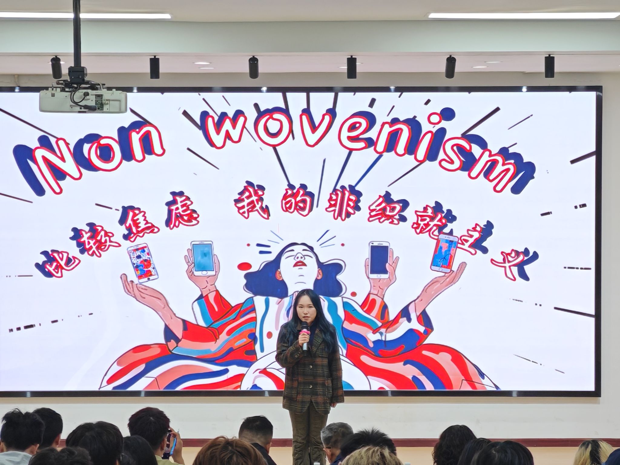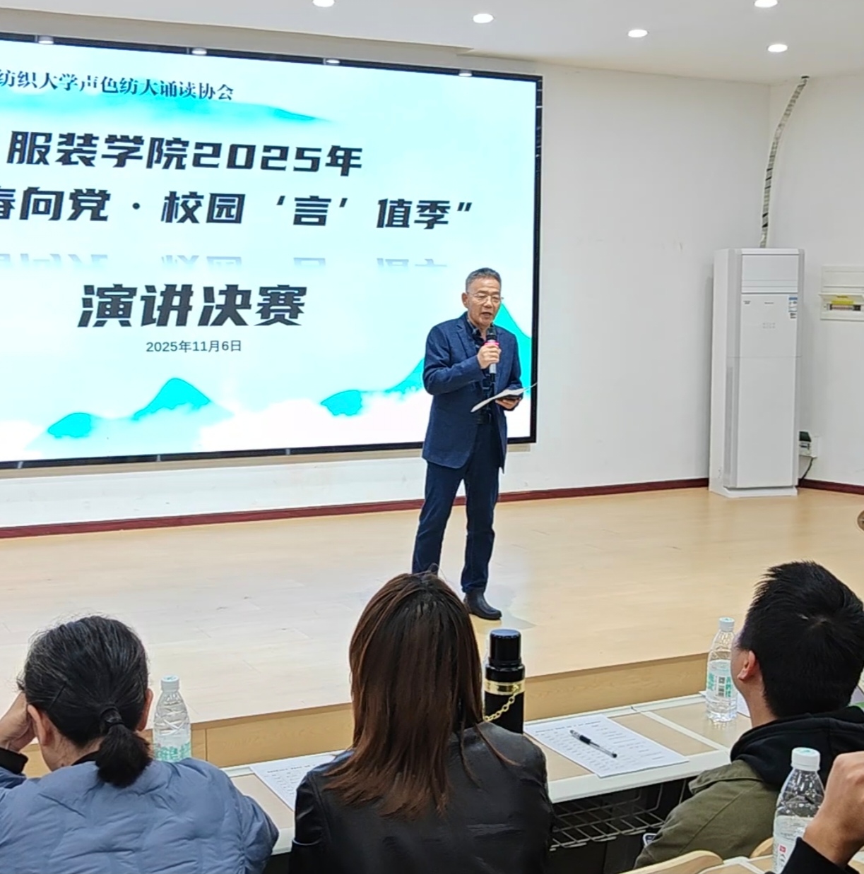 本次比赛以“大学”为主题,既是语言表达的竞技舞台,更是服装学子展现综合素养的窗口。赛事现场亮点纷呈,除十位学子的主题演讲外,精心设置的英语演讲展示环节,让语言魅力跨越国界,展现了服装学子多元的能力与开阔的视野。选手们身着融合专业设计巧思的穿搭,与各自的演讲主题相得益彰,实现“言值”与“颜值”的双向奔赴。