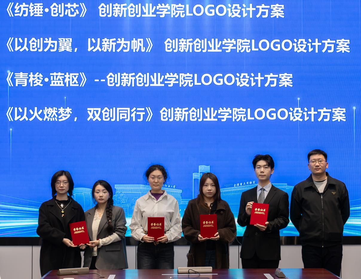 选送的《纺锤·创芯:创新创业学院LOGO设计方案》、传媒学院选送的《青梭·蓝枢——创新创业学院LOGO设计方案》等4项作品获得“创新创业学院logo设计入围奖”。