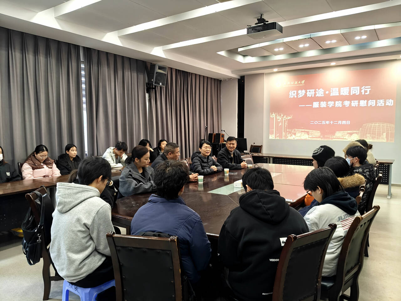 在南湖校区尚知楼三楼会议室举办院长答疑课暨考研慰问活动,学院院长陶辉,副院长钟蔚、江学为,党委副书记郭泰辰,毕业班辅导员李昆及2026届部分考研学子参加了本次活动。活动由郭泰辰主持。