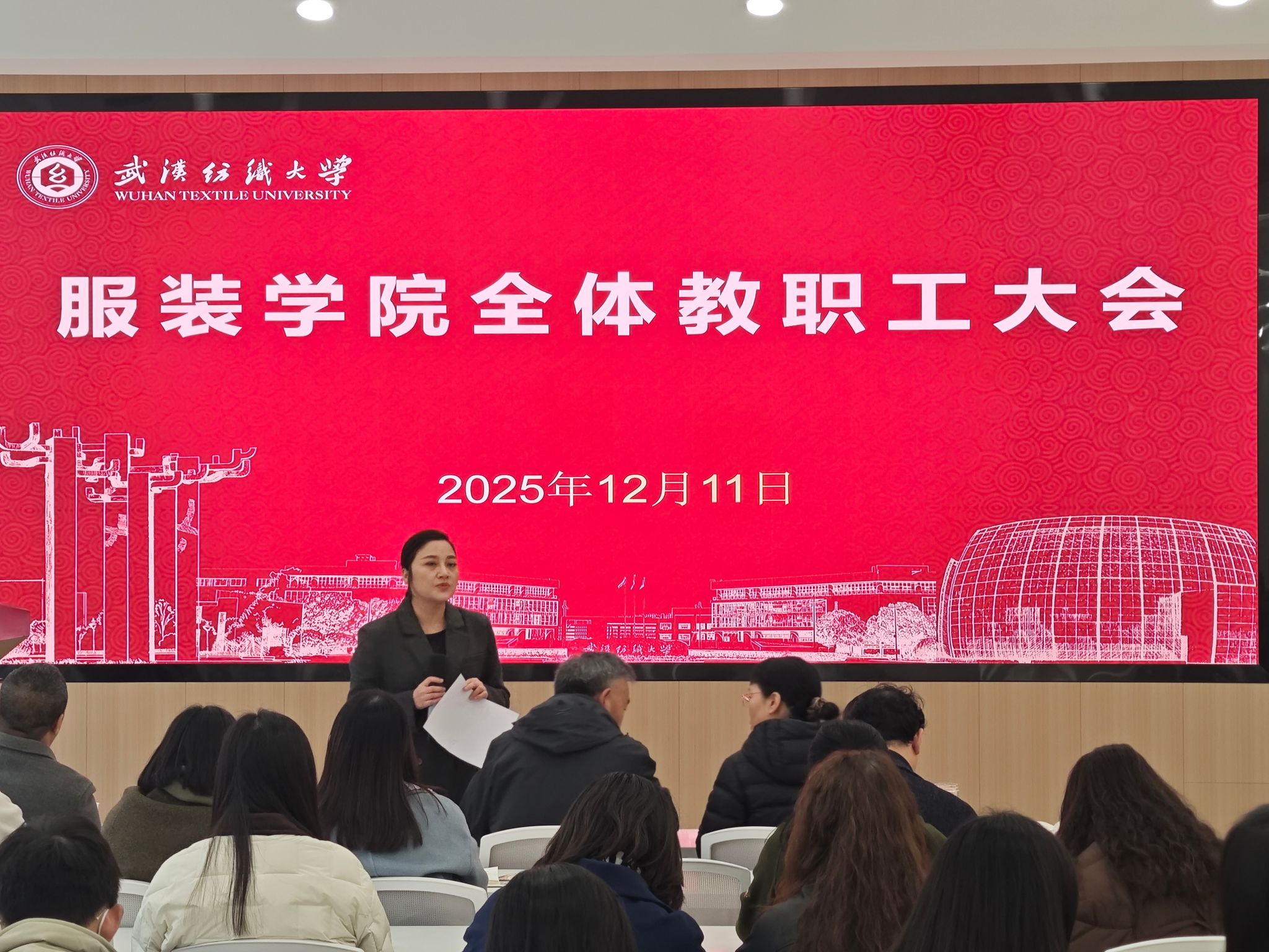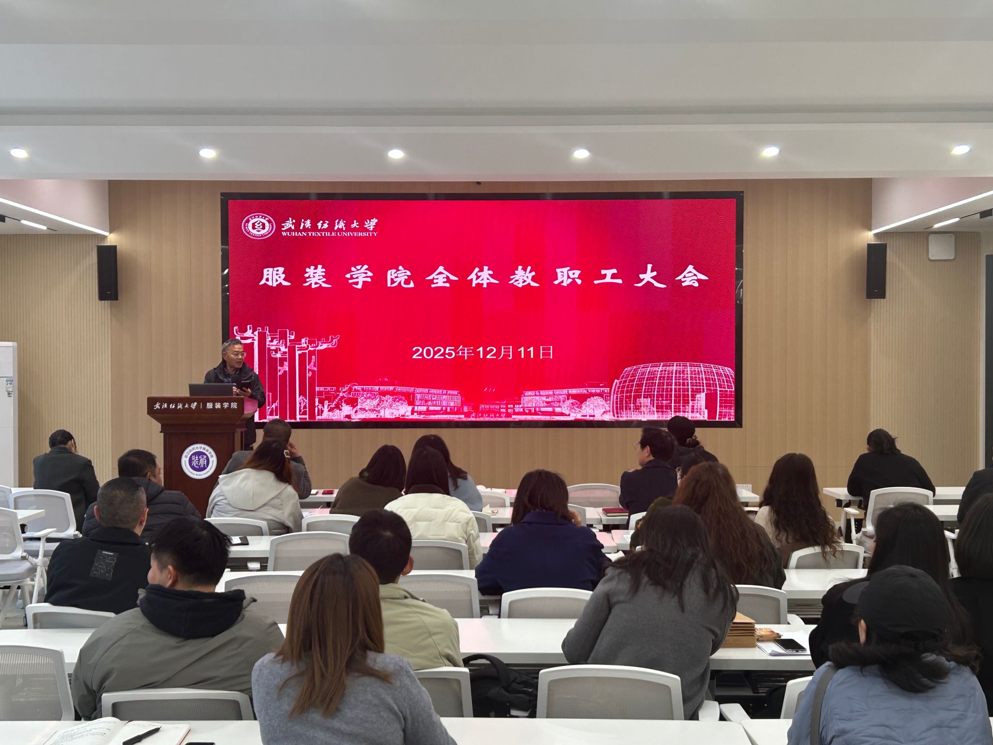 院长陶辉在讲话中着重强调研究生导师们要定期开好组会,及时关注学生思想动态与学习情况,适时将在学院开展组会观摩会。毕业设计指导老师要加强与毕业生的常态化互动,精准对接设计需求,帮助学生解决实际困难。针对武汉纺织大学2026年“科创杯”大学生创业计划竞赛工作,陶辉鼓励教师们积极带领学生参赛,以赛促学、以赛促练。年末将至,陶辉要求各系部、实验室、学工队伍做好年终总结相关工作。