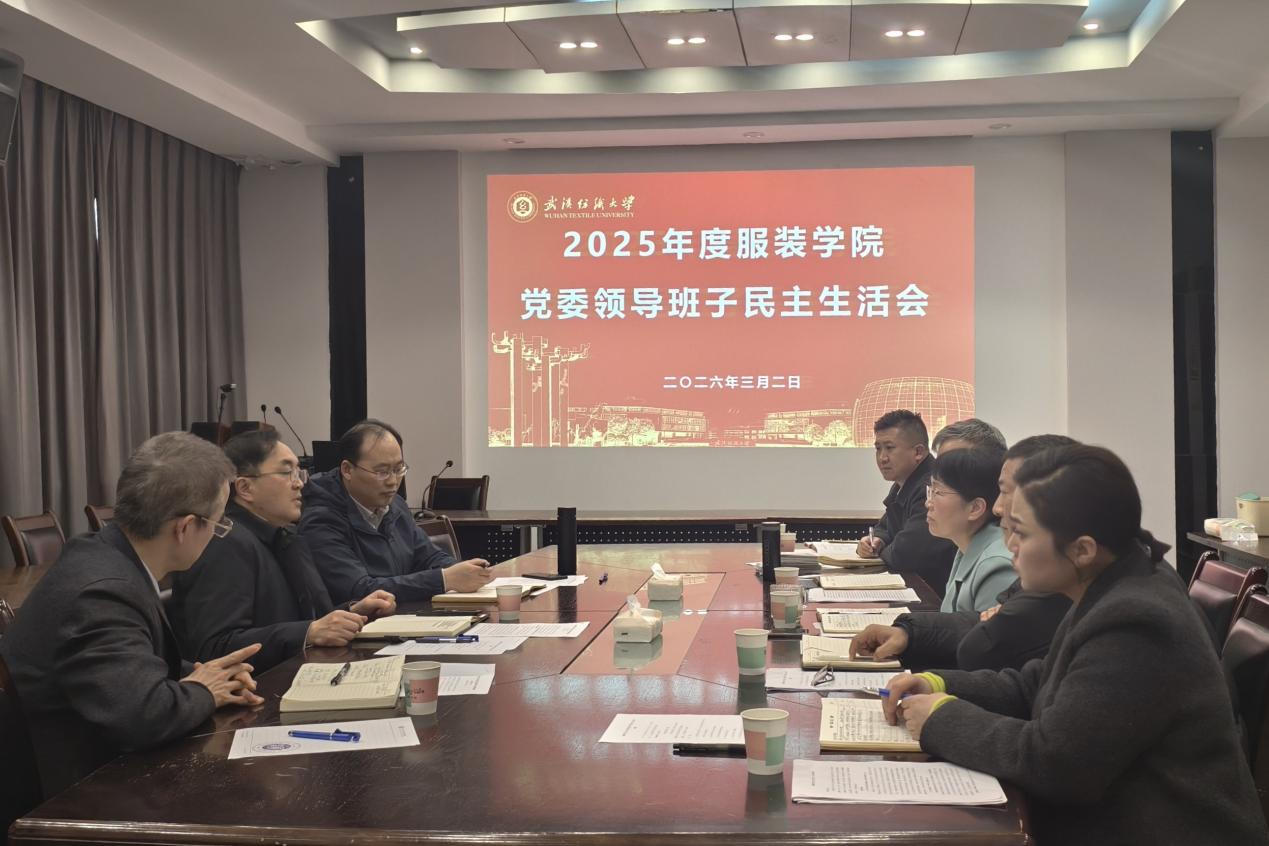 最后,杜新年代表学院领导班子表态发言。他表示,要以此次民主生活会为新起点,坚决做好落实整改,深化理论武装,狠抓作风建设,巩固深化中央八项规定精神学习成果,将会议成效转化为攻坚克难的实干行动;要凝心聚力深化内涵建设,推动学院党建工作与业务工作的深入融合,聚焦“双一流”攻坚目标和“十五五”开局战略,主动融入和服务湖北“建成支点”的战略大局,以实实在在的发展成效,为“美好纺大”建设和中国式现代化湖北篇章积极贡献服装力量。