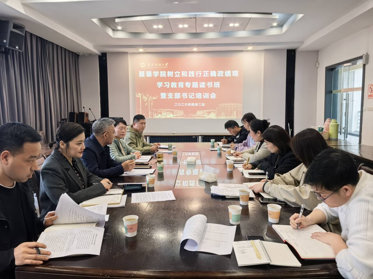 在综合楼三楼会议室举办树立和践行正确政绩观学习教育专题读书班暨支部书记培训会。学院党委全体委员、各支部书记参加会议,会议由学院党委书记杜新年主持。