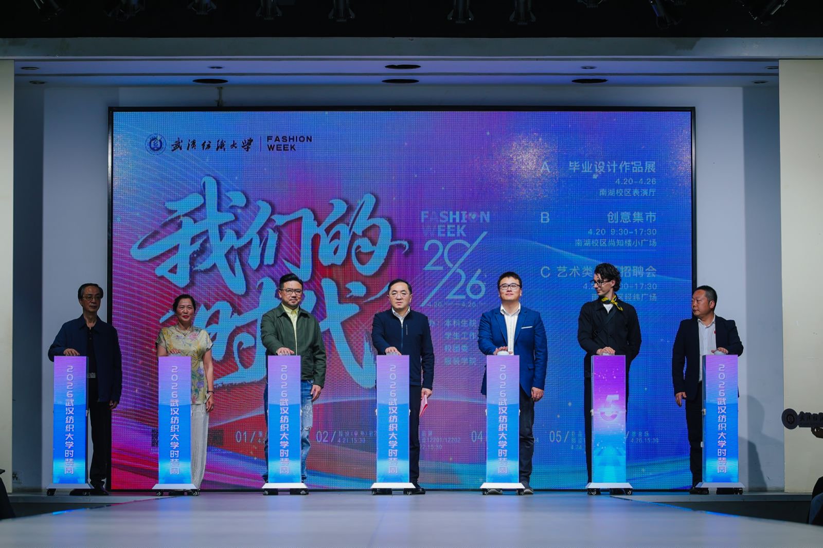 2026年4月20日下午,武汉纺织大学南湖校区表演厅星光璀璨,2026年“我们的时代”时装周隆重启幕。本次时装周是学校博彩投注