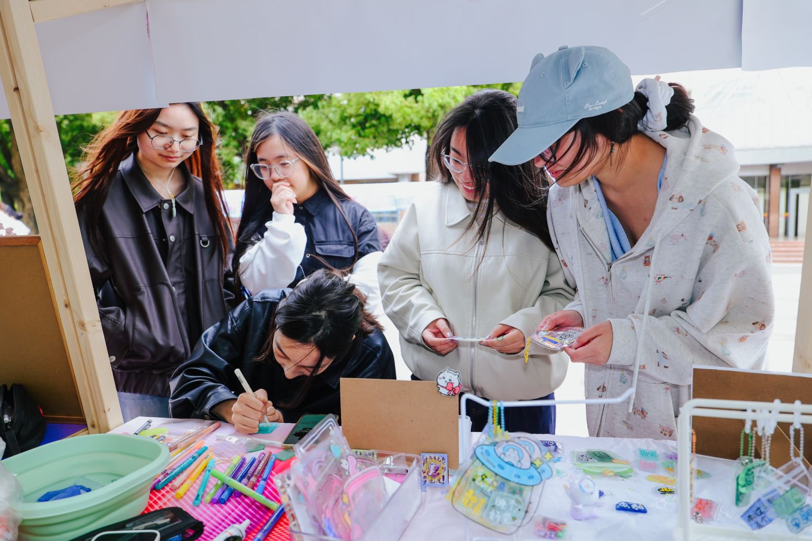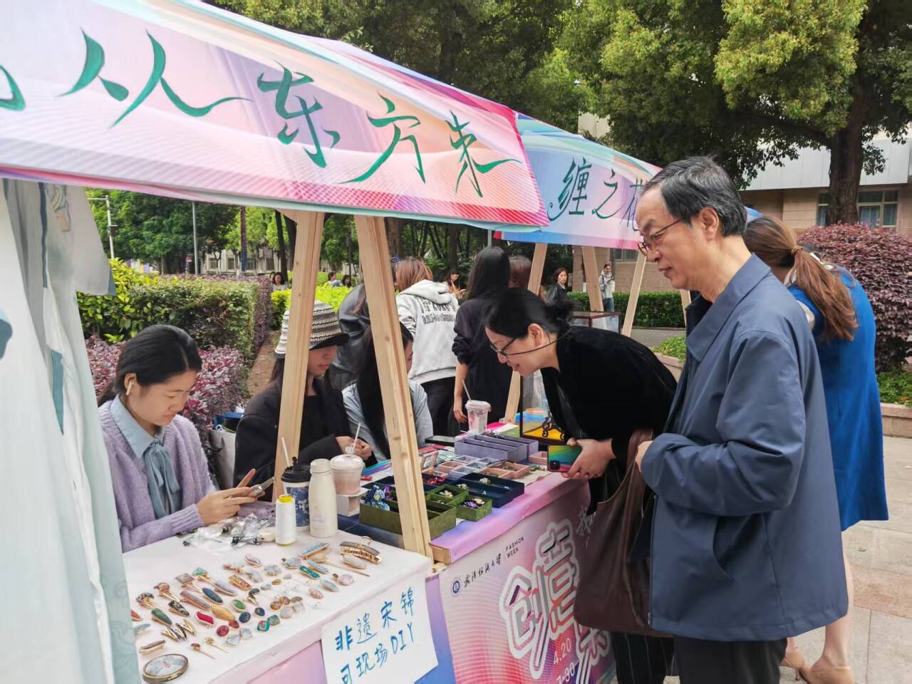 同期举办创意市集与人才供需对接会,成为本次活动的一大特色。创意市集上,学子亲手制作的时尚配饰、布艺作品、文创产品琳琅满目,每一件作品都凝聚着学子们的创意与匠心,不仅锻炼了学子的实践能力、市场思维与沟通能力,更让时尚文化走出校园、走进大众生活,传递纺大时尚的温度与力量。