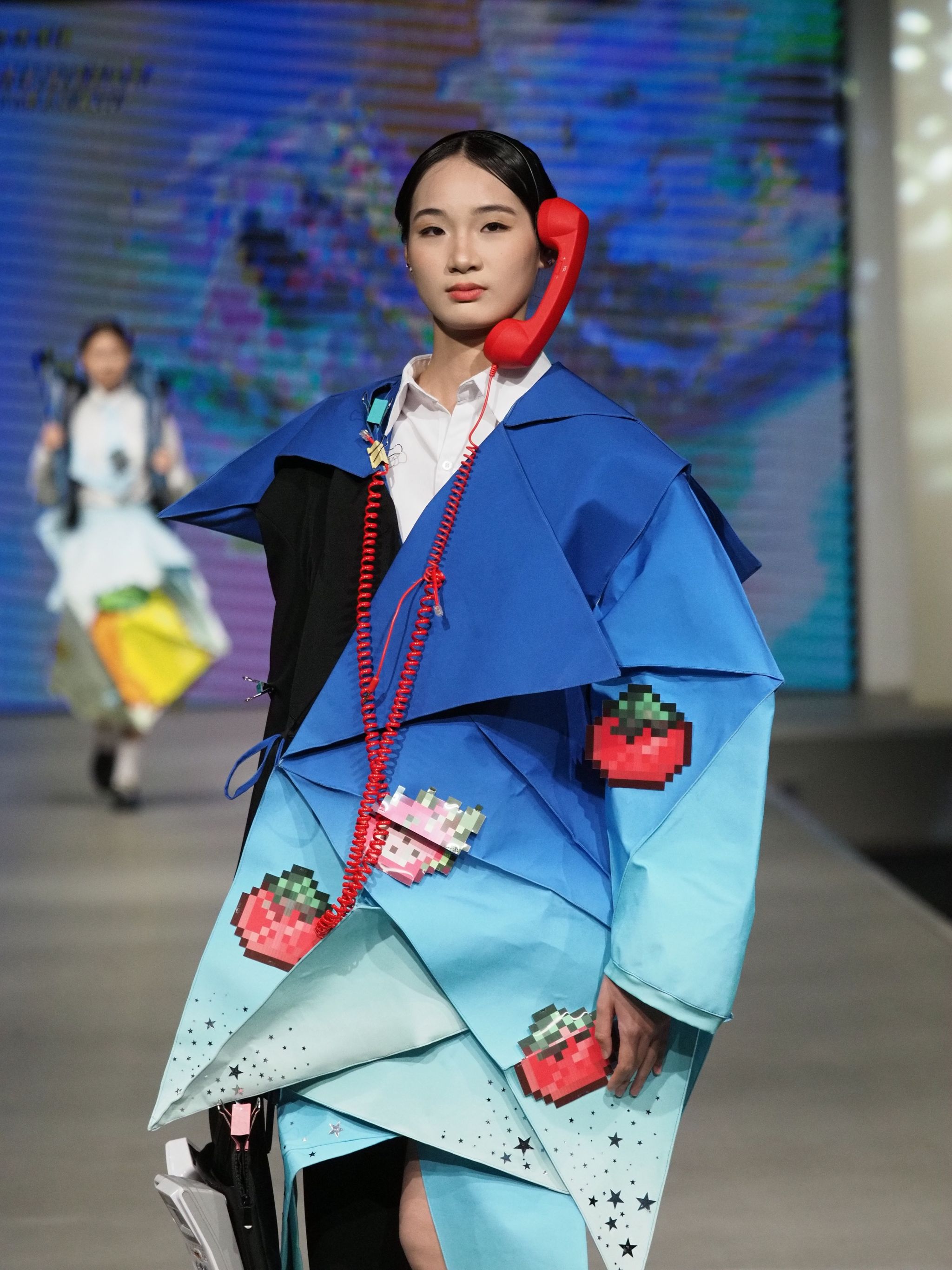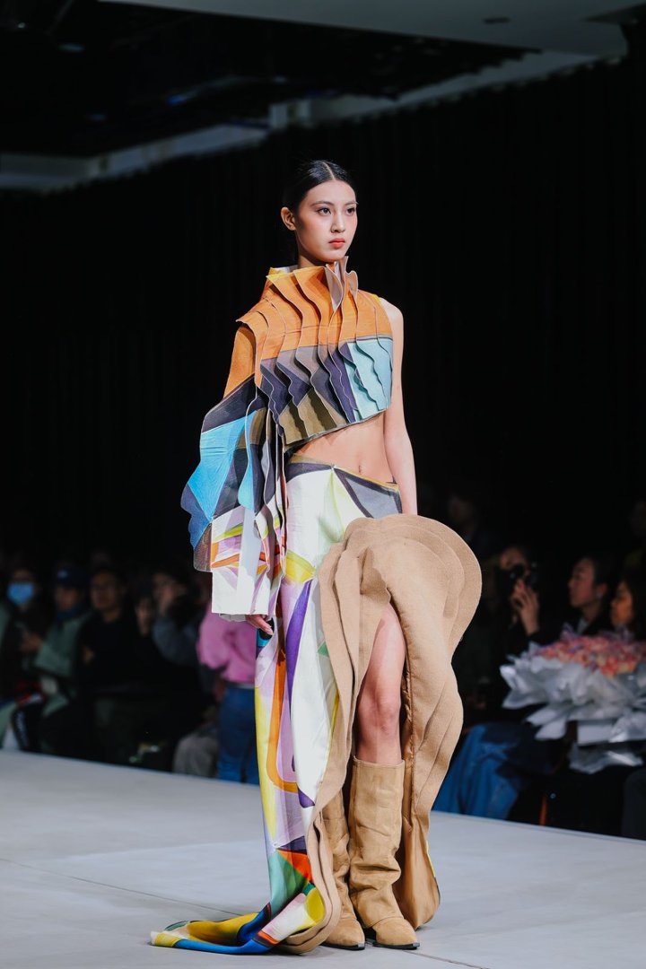 在全部的服装设计作品里,毕业生们的作品深度融合非遗活化、AI设计、3D打印、智能面料等前沿技术,勾勒“科技与时尚共生”的未来图景。
