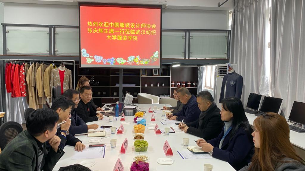 2021年11月25日,中国服装设计师协会主席张庆辉一行到中心参观指导,校党委书记田辉玉亲切接见了张庆辉一行,并听取了课题组关于《中国男装四十年流变》的课题研究进展汇报。