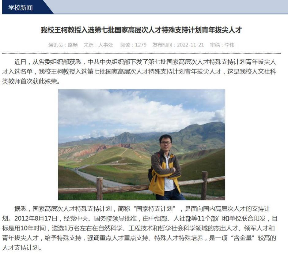 (王柯教授入选第七批国家高层次人才特殊支持计划青年拔尖人才)