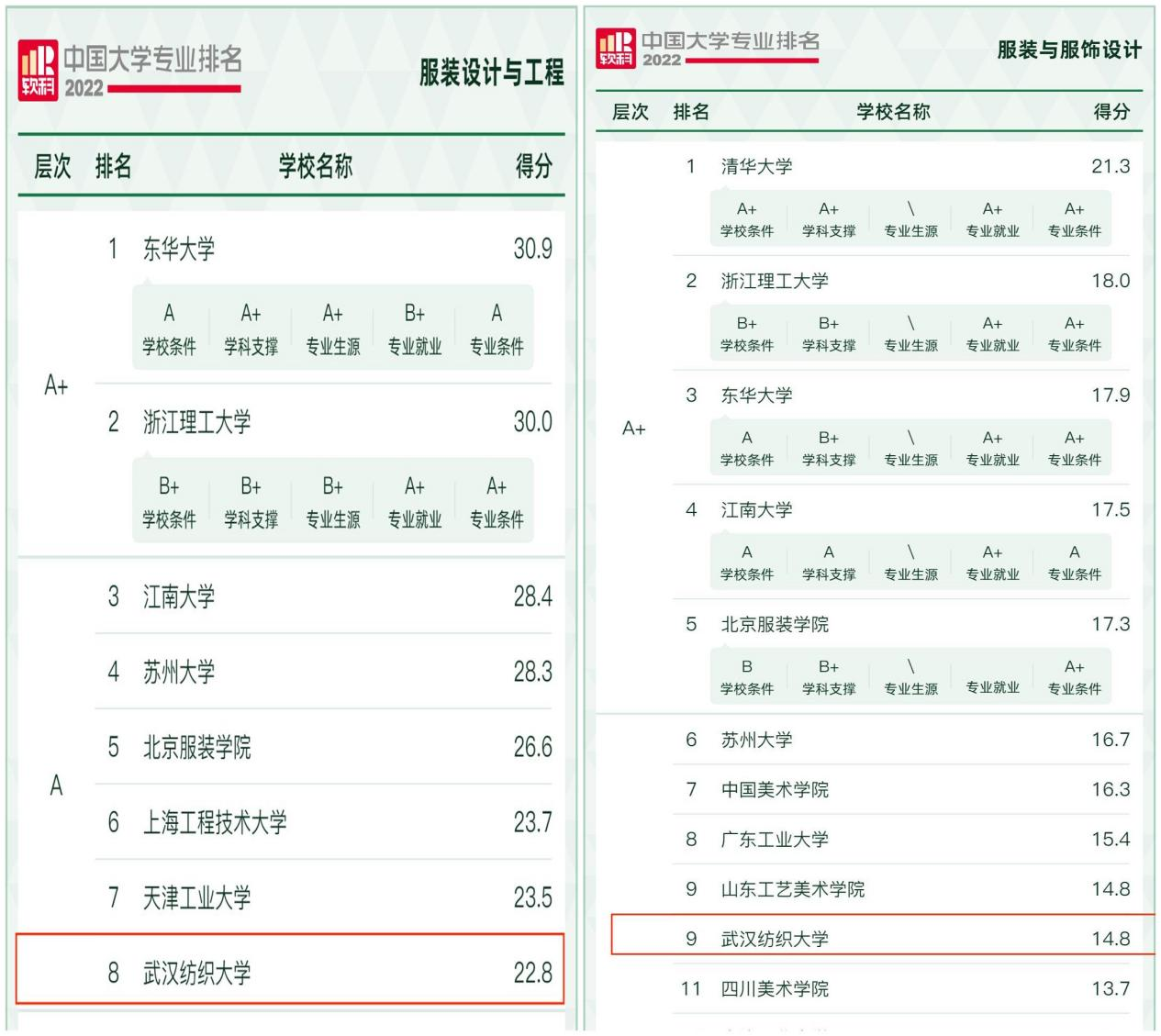 2022年,服装设计工程通过国家工程教育专业认证受理。学院新增1个省级一流本科专业建设点(表演专业)。到目前为止,学院全部专业成为国家级和省级一流专业建设点。其中,服装与服饰设计专业为国家级一流专业建设点。专业建设全面进入高质量发展阶段,在2022年软科中国大学专业排行榜中,服装与服饰设计在151所学校排名第九,评A;服装设计与工程在41所学校中排名第八,评A。