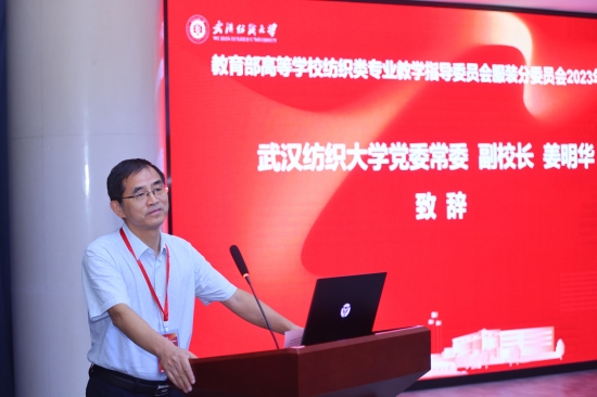 会上,武汉纺织大学副校长姜明华代表学校对参会的领导和专家表示热烈欢迎。他指出,教指委服装分委会在服装专业建设和人才培养中起到至关重要的作用,希望在大家的共同努力下,为服装专业的教育改革和创新,为行业培养优秀的人才提供指导和支持,为推动我国服装专业和服装行业的可持续发展做出积极贡献。同时,希望能够与各位同行建立更加紧密的联系,共同推动我国服装类专业的高质量发展。