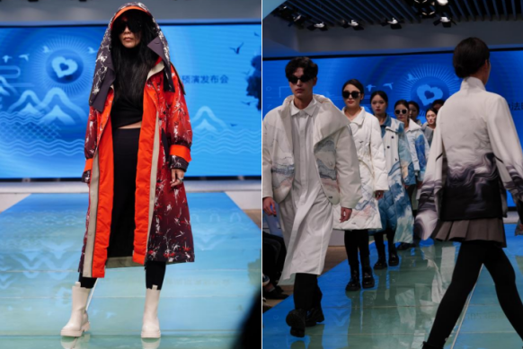 “共青羽绒服,温暖全世界”是此次巴黎展演的主题,结合共青城的垦荒文化、科技创新、绿色发展创作了“红色青春”、“炫酷青春”、“国风青春”三个系列。