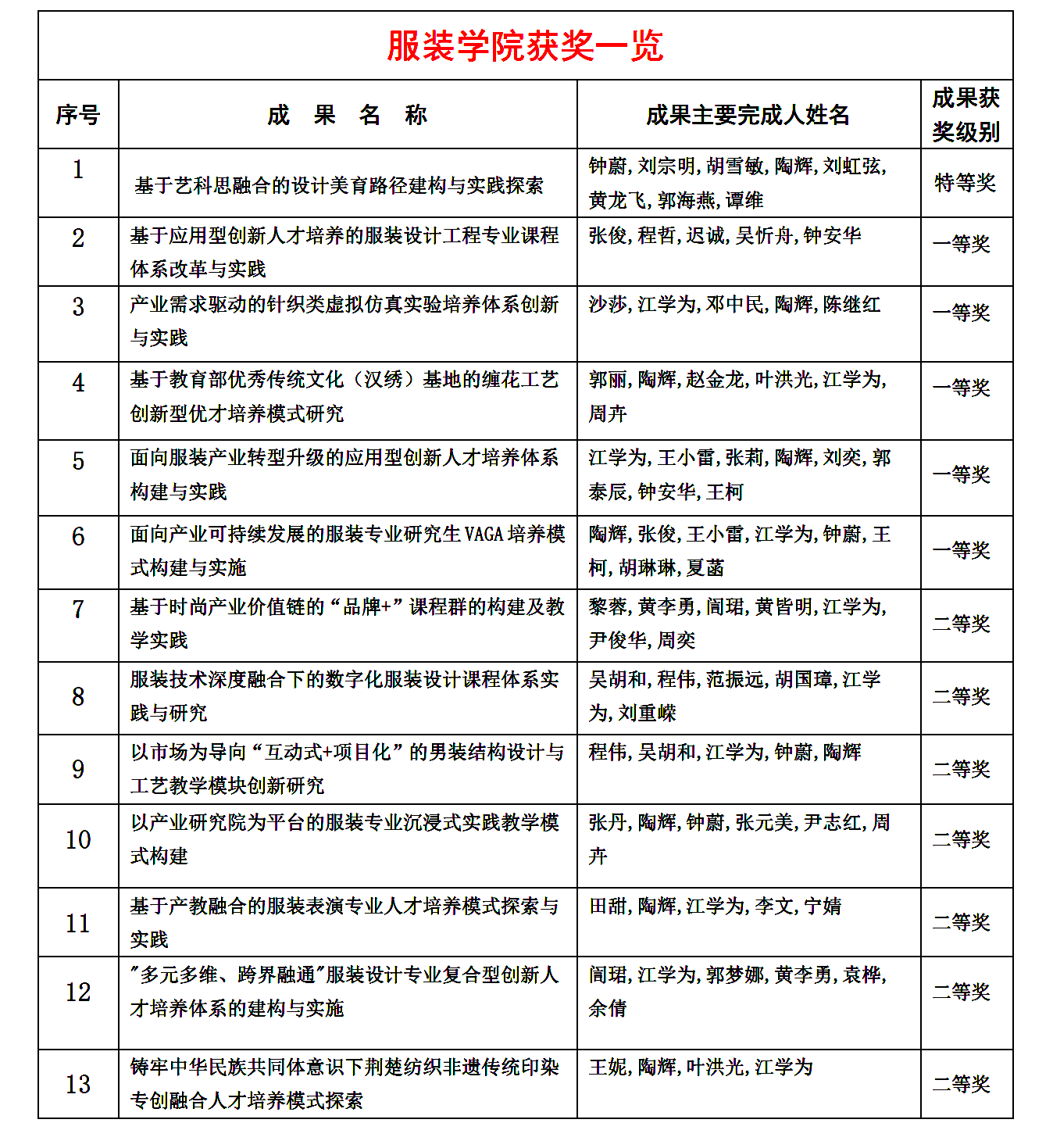近日,“纺织之光”2023年度中国纺织工业联合会纺织高等教育教学成果奖评审结果公示。我校共有82项成果获奖,其中特等奖8项。我院共有13项成果获奖,其中特等奖1项,一等奖5项,二等奖7项,创学院历史新高。获奖成果内容涵盖博彩投注