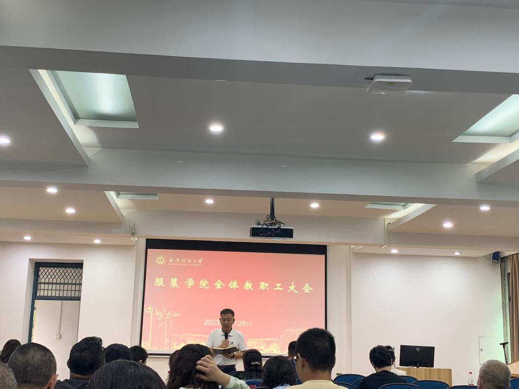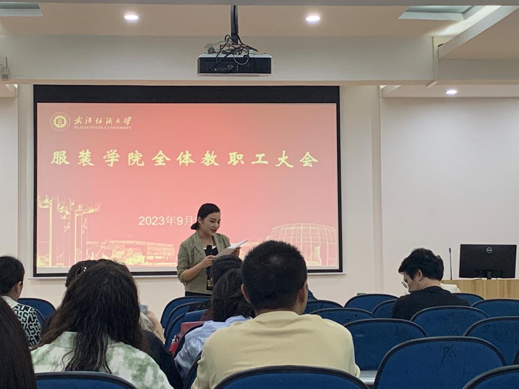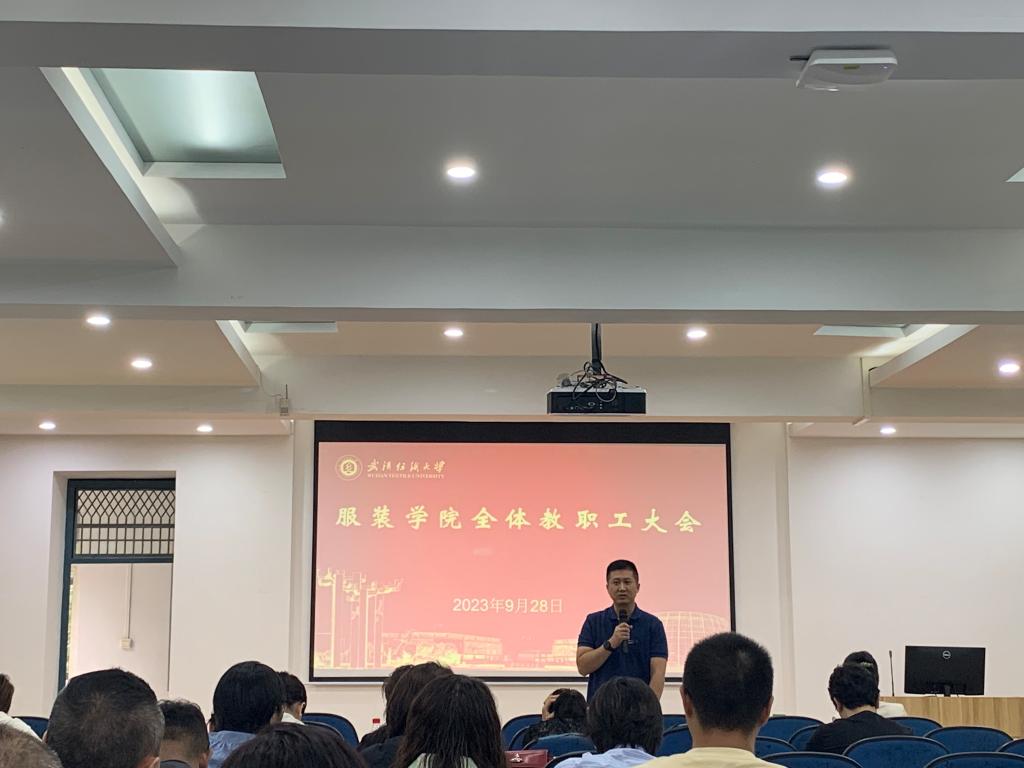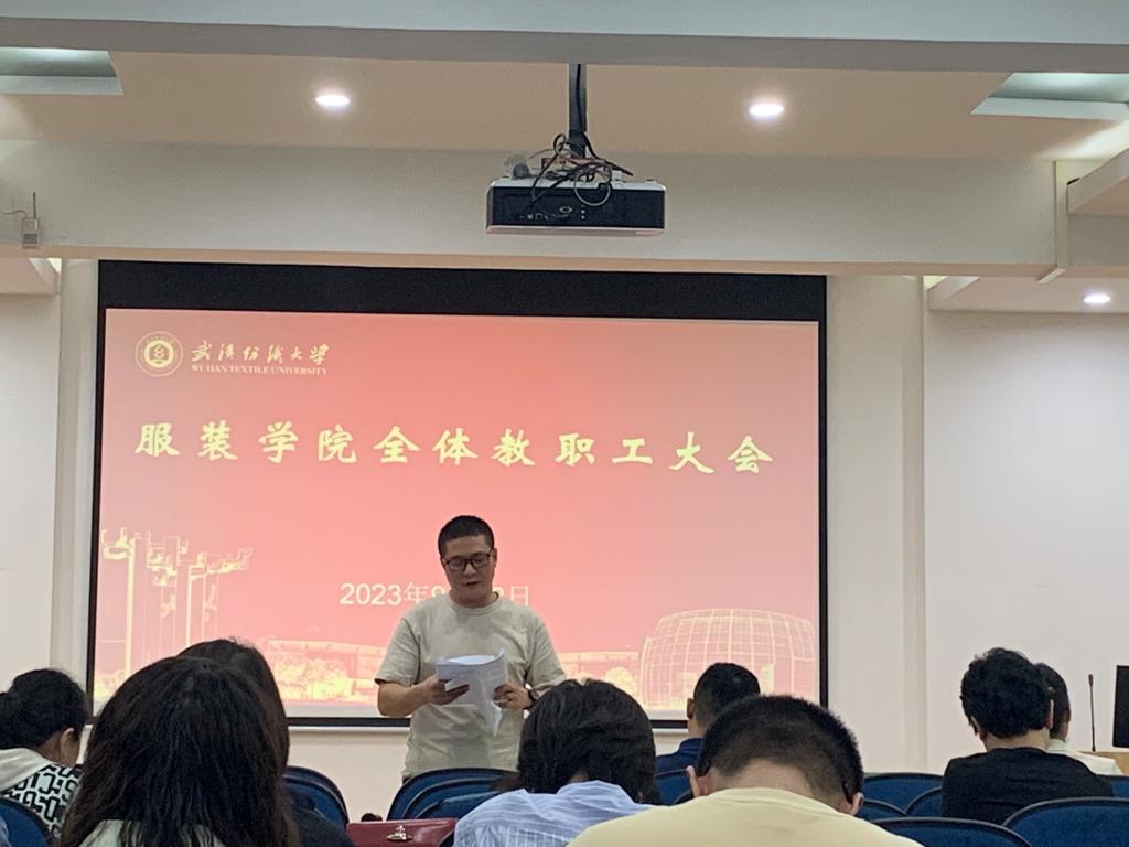 陶辉院长强调了教职工考勤制度、离汉报备流程及师生对外演出学院统一管理等规定,传达了学校2023年度职称申报及起点认定工作通知要求,介绍欢迎新入职教职工曾琦、徐婷两位老师。