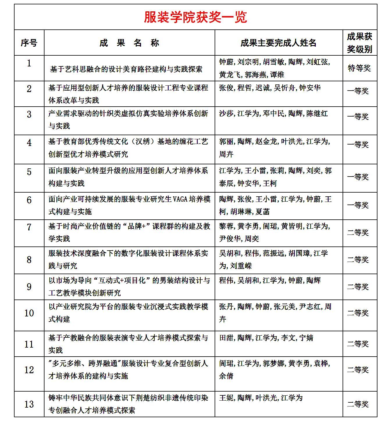 (学院获批“纺织之光”高等学校教学成果奖13项)