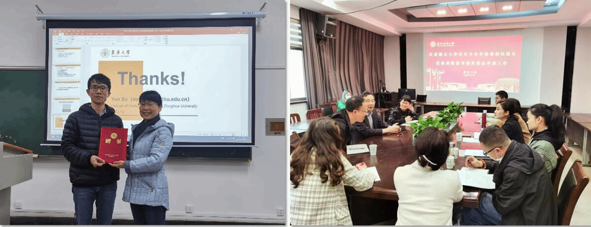 博士生导师陈芳教授,荆州文物保护中心主任方北松研究员,中国艺术研究院方李莉教授,乔万尼集团董事长傅杰先生,南京艺术学院博士生导师夏燕靖教授等知名专家学者来学院作主题报告30余人次,支持师生参加各类学术活动 100 余人次。