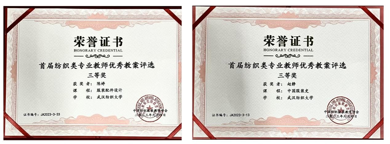 推进服装与服饰设计国家一流专业建设,获批湖北省虚拟仿真一流课程2门,线上平台新课程上线3门,出版部委级规划教材3部。承办中国纺织类教学指导委员会服装分委员会年会,邀请教育部教学指导委员会专家郁崇文教授等8位专家来学院指导工作。完善学院教育教学管理制度,先后编撰课程思政指南口袋本4册,持续加强学院基层教学组织建设,服装与服饰设计教研室获批湖北省优秀基层教学组织,圆满完成本科教育教学审核评估。获批“纺织之光”高等学校教学成果奖13项(特等奖1项, 一等奖5项,二等奖7项),创学院历史新高。获全国纺织类高校青年教师讲课比赛二等奖1项,优秀教案三等奖2项。