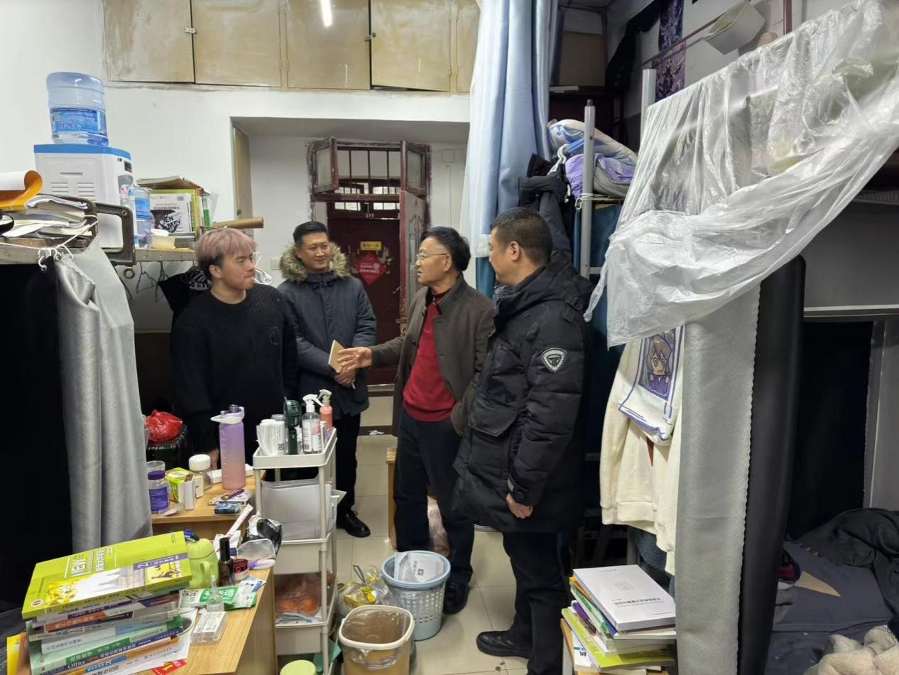 陶辉深入学生宿舍七栋,与同学们亲切交流,关怀学生生活,了解学生寒假学习情况并询问同学们新学期的学习目标,细心叮嘱同学们注意宿舍卫生和宿舍安全。陶辉强调,新学期到来,同学们要努力提高自我管理能力,养成良好的学习、生活习惯。