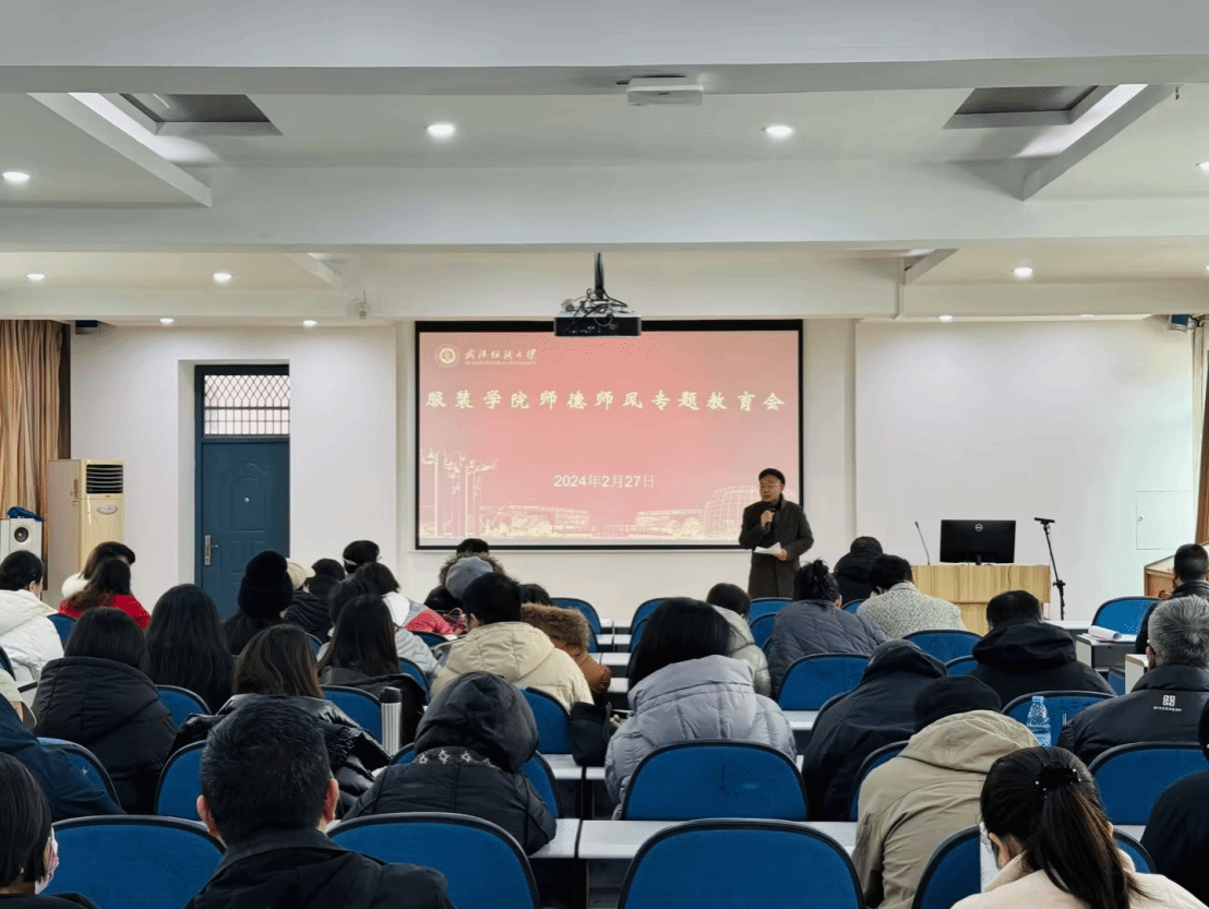 在服装艺术楼二楼学术报告厅召开了2024年春季开学工作部署会暨师德师风专题教育会。会议由院长陶辉主持。