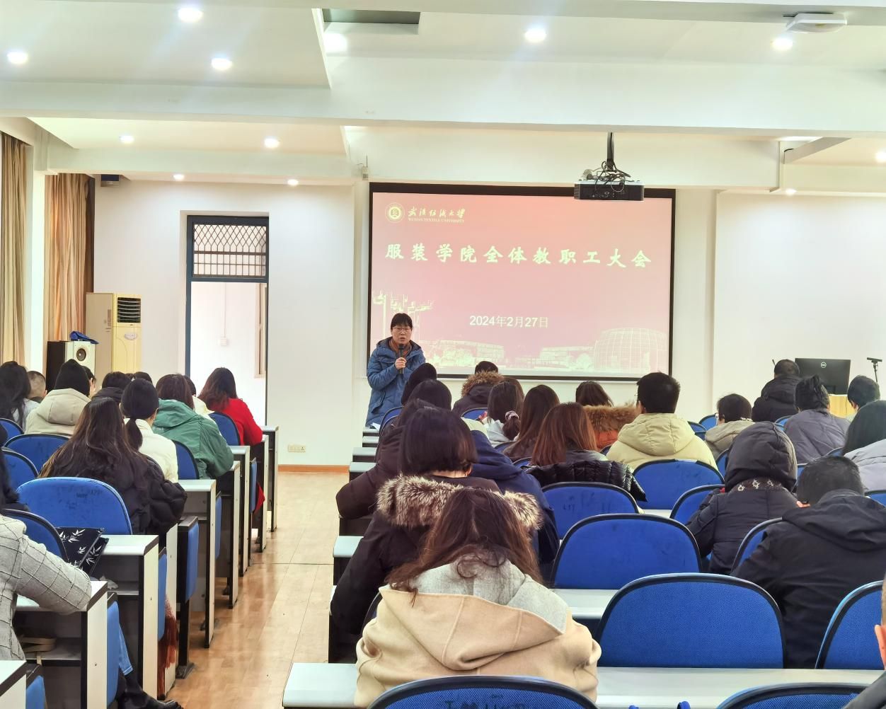 院长陶辉传达了学校第二届教职工暨工会会员代表大会第三次会议精神,解读了《解放思想,真抓实干,奋力推进“美好纺大”高质量发展》的学校工作报告。她指出,2024年是学校“办学质量提升年”,学院将以“凝聚共识、聚焦发展;科学谋划、创新驱动;规范管理、行稳致远”为指导思想,紧紧围绕“创先争优”工作目标,聚焦基金申报、人才培养、国际合作、就业等重点工作,科学谋划,精准高效开展工作。特别强调2024年将进一步规范管理,加强制度建设,构建科学合理规范有效的考核机制,激励老师们在科研、教学、人才培养方面取得更多成绩。鼓励教职工以担当作为、创新有为、发展有为的工作精神,积极参加学院发展各项事务,齐心协力推进学院高质量发展,努力为学校高质量发展作出更大贡献。