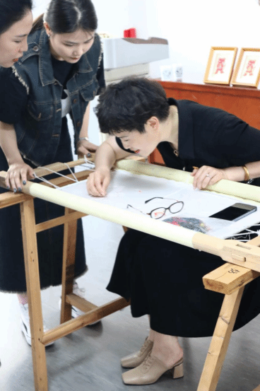 随后,大家一同前往武汉纺织大学非遗馆,深入了解汉绣这一古老的传统技艺,切实体验和传承工匠精神。