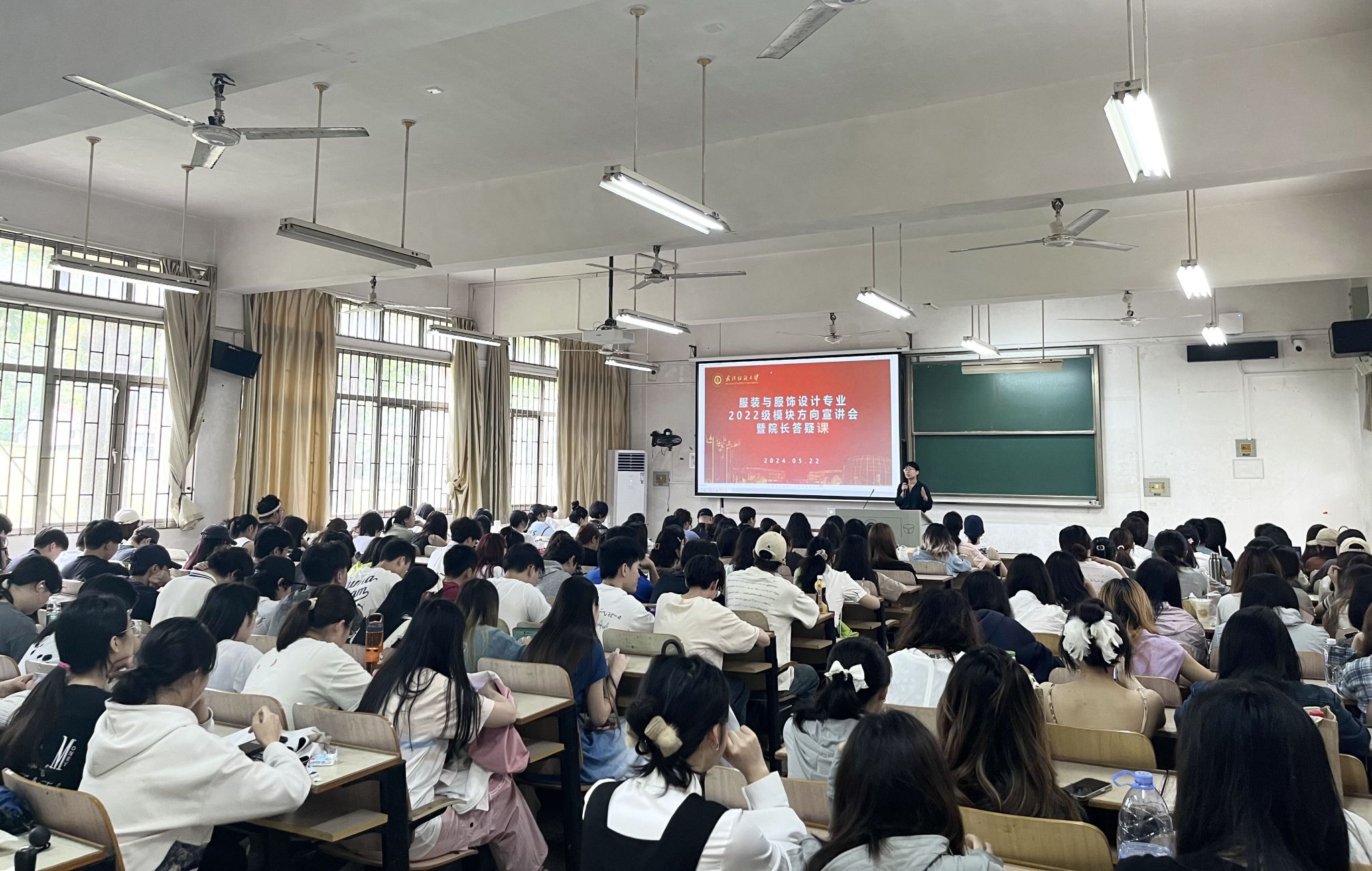 陶辉院长针对2022级服装与服饰设计专业面临的模块课程选课问题重点谈到三个方面,一是,从学院历史和服装与服饰专业的建设历程出发,分析了艺术教育发展趋势对专业方向设置的变化和调整的影响;二是,她表示专业方向深化发展影响到整个社会工作发展,产业需求是高校人才培养的指挥棒,培养高精尖的创新型应用人才是社会和产业所需;三是,服装与服饰设计专业作为国家级一流本科专业具有雄厚的基础,无论同学们选择哪个模块方向,只要潜心钻研,脚踏实地都会在不同的领域做出骄人的成绩。她强调,学院人才培养方案的优化和实施是本科教育教学质量提升的重要举措。专业是职业的起点,同学们找准了专业学习方向,将拥有无限可能,成为新时代的社会栋梁。