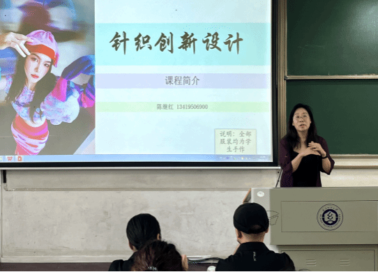 在针织创新设计方向宣讲环节,陈继红副教授就该方向的发展历程、行业需求、模块课程构成及优秀学生的职业发展进行了详细地介绍。该模块课程旨在熟悉针织工艺和技术的基础上,从训练思维的弹性推动针织创意样品设计的开发,探索针织材料的特征属性,并延展成从元素到形态到款式的设计逻辑推进能力;用实践实验过程验证设计的可能性和多样性,最终培养将概念转化落地的设计整合实操能力。