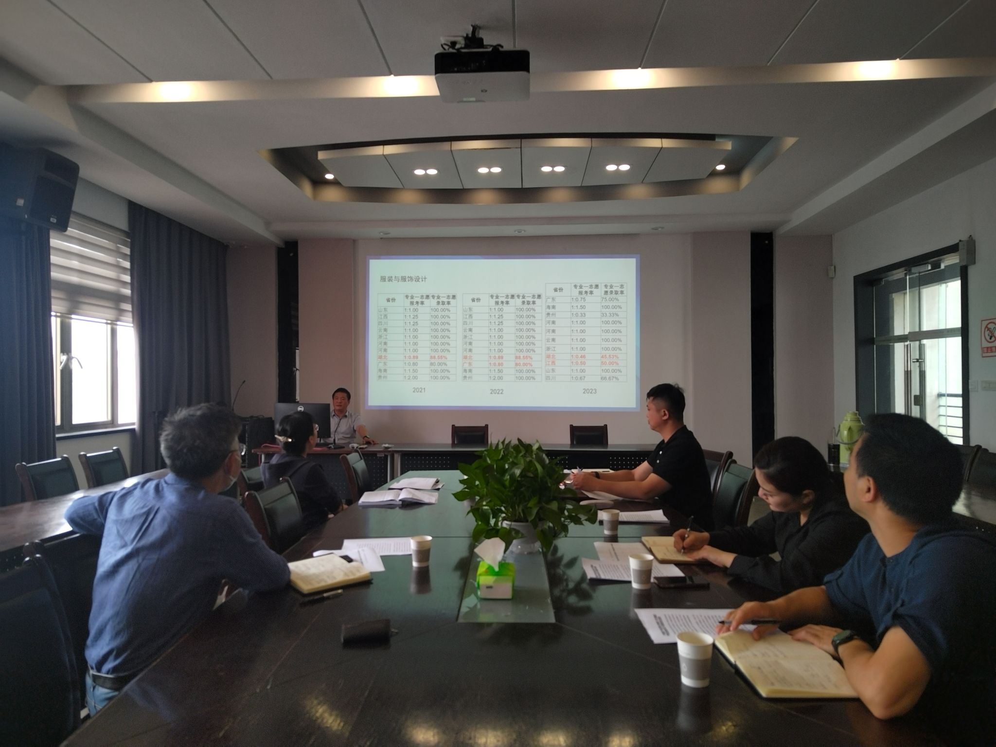 三个本科专业近三年的录取数据进行了详细分析。全体成员围绕招生录取数据,结合学校的发展需求、学院的办学实际等主要情况,就招生宣传、专业计划调整、地区分布等情况进行了充分讨论,对下一步招生宣传进行了详细部署和优化。