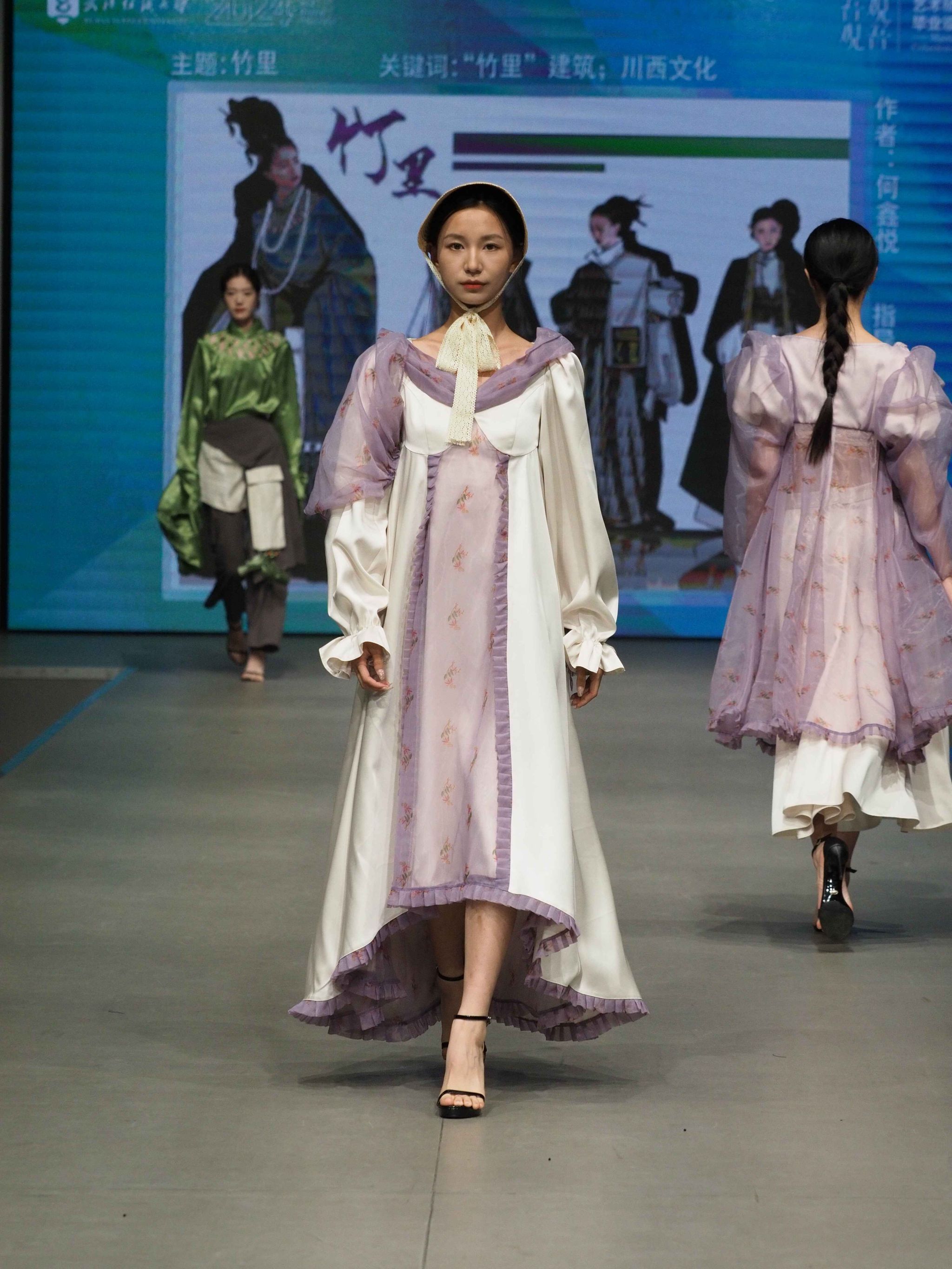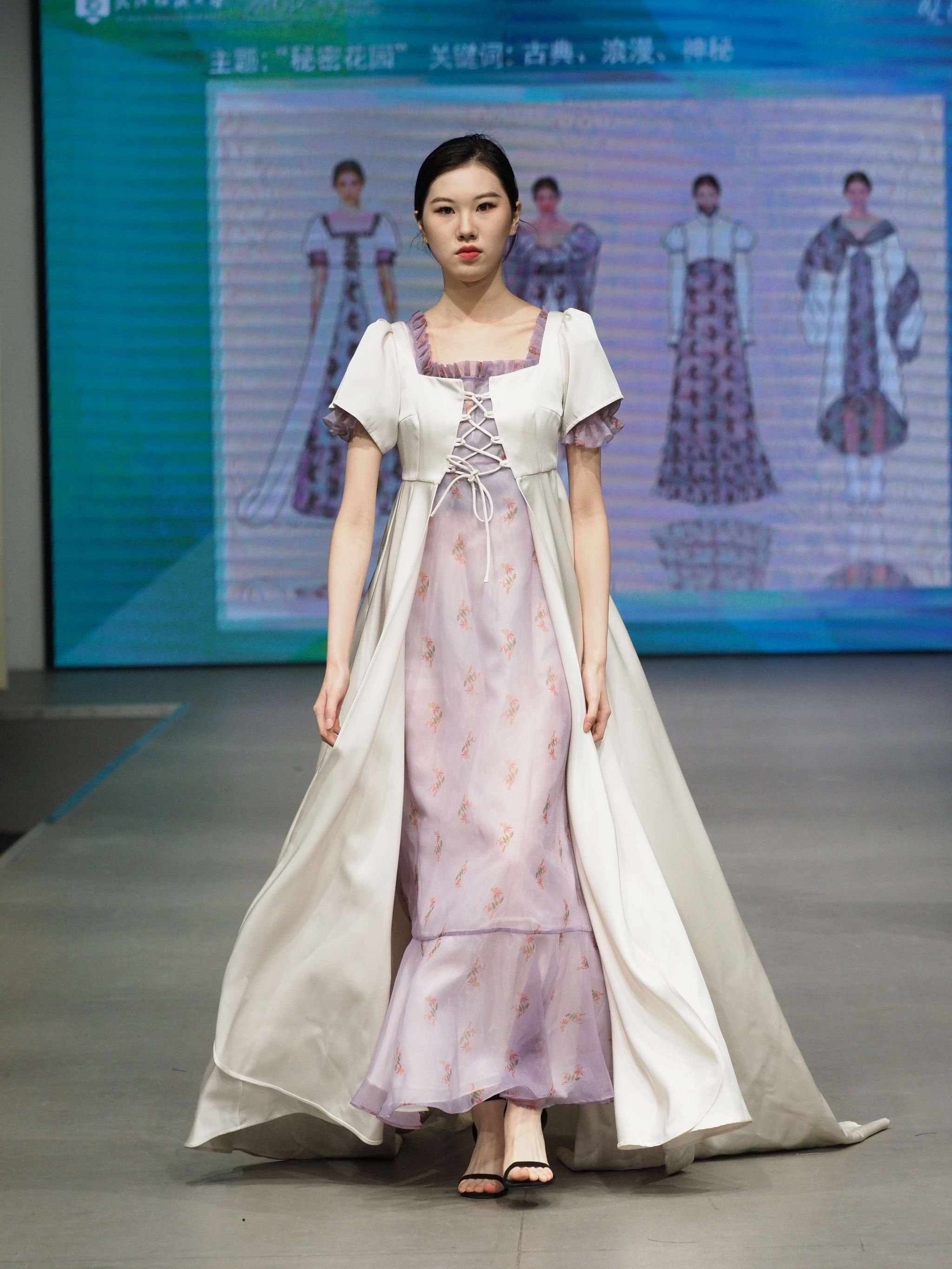 本次毕业展演以“吾观 观吾”为主题,分上下午两场。“吾观”出自《道德经》第十六章:“万物并作,吾以观复”。蕴含了深刻的道家哲学思想,表达了一种观察世界、领悟自然的智慧和宁静。“观吾”即向内,明心见性,寓意发现自己真心,见到本身真性。本次展演作品汇集了2024届艺术设计专业65名研究生246套设计作品,作品既有功能时尚的设计,又有以传统文化为灵感的创作,设计师们将中国传统的锁绣、云雷纹、梅花纹等元素与现代剪裁、色彩和结构设计相结合,创造出既有传统韵味又有现代感的服装。他们将古老的文化符号赋予了新的生命,让传统与现代在服装中和谐共舞,为观众带来了一场视觉与文化交融的盛宴。从初期设计灵感的迸发,到实践过程中对于服饰效果的反复精进,再到后期对于精神世界的深度诠释,每一步都凝聚着设计师们对于主题的独到见解。
