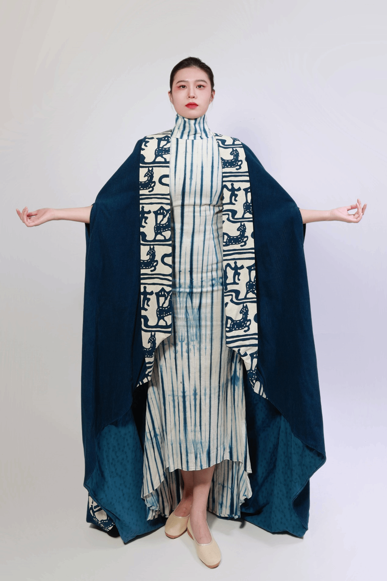 《楚蓝染兮》非遗蓝染服装作品是基于湖北地区省级非遗项目:天门蓝印花布印染技艺,以及市级非遗项目:黄州蓝靛印染技艺,这两项蓝染非遗项目为设计灵感。以复原千年楚蓝文化根脉为己任,在多年与非遗传承人共同恢复蓝草种植、采摘打靛、建缸染色等操作环节基础上,守正非遗基因、探寻活态传承、结合时尚载体,探索创造性转化与创新性发展的新路径。同时多年设计赋能乡村振兴,服务地方文化经济,为湖北地区高质量文化产业发展做出了新的贡献。