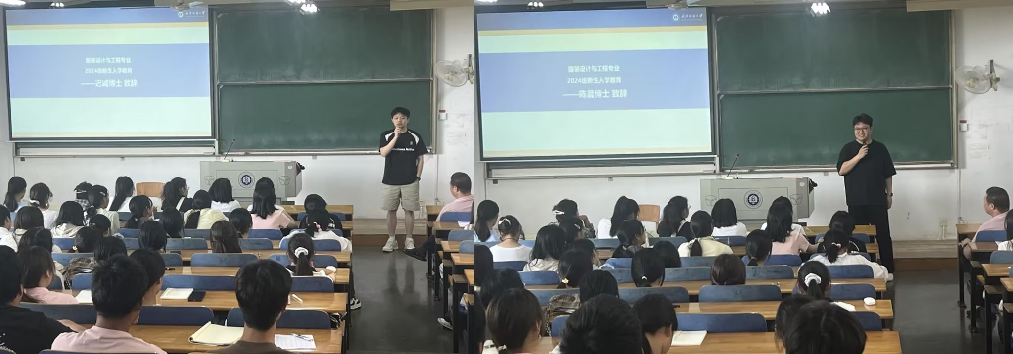 迟诚博士和陈晨博士作为教师代表发言,从不同的角度介绍了服装设计与工程专业的内涵与发展前景。迟诚博士提到,随着纺织服装产业的不断发展,专业人才的需求日益增加,新生应当培养自身的专业素养与创新能力。陈晨博士则强调了资助学习的重要性,鼓励学生培养良好的自律能力,积极参与各类实践活动,提升自身的竞争力。