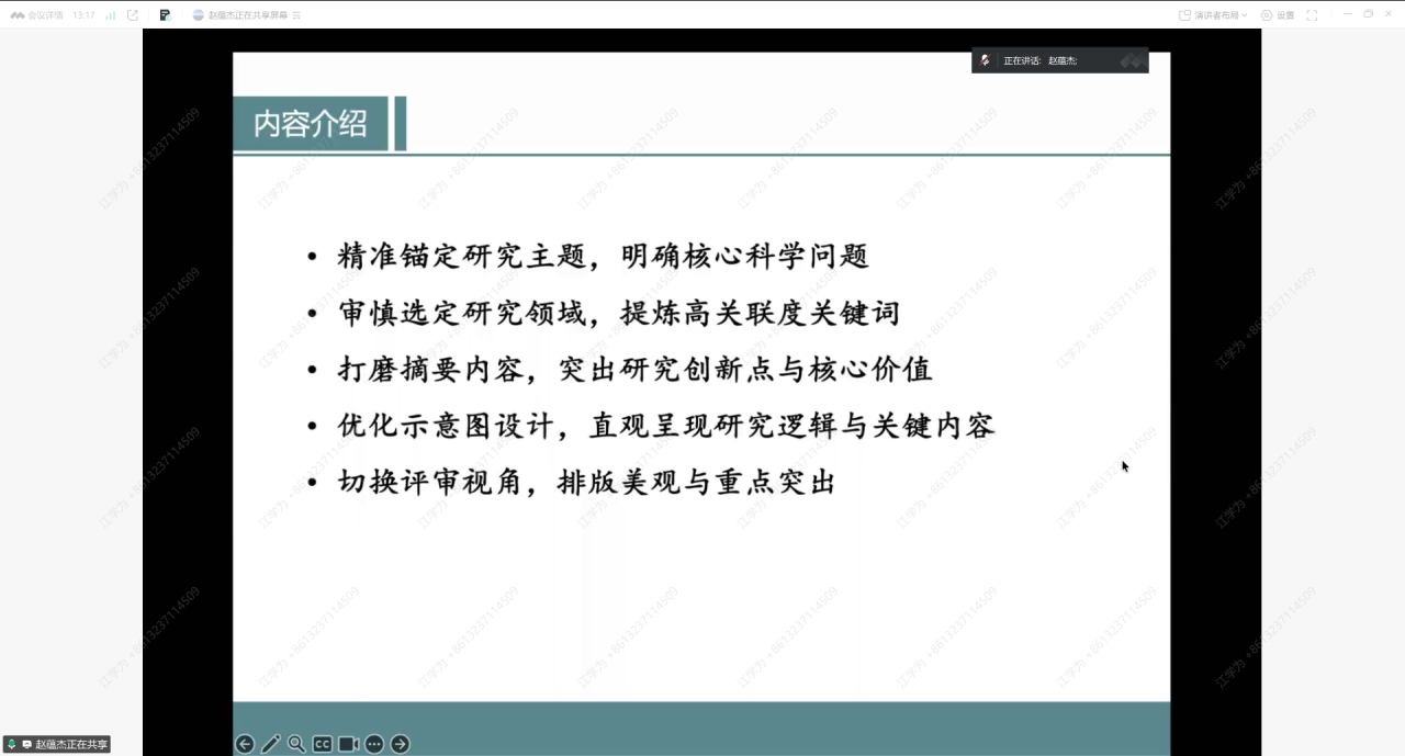 随后,赵蕴杰教授围绕基金申报的核心要点展开系统讲解。在分享中,赵教授针对青年基金和面上基金的差异给出精准指导:青年基金需紧扣自身研究基础,聚焦“小切口”深耕细作,兼顾前沿性与国家战略需求;面上基金则要 “站得高、扎得深、铺得开”,实现从“增量创新”到“存量突破”的跨越。他还强调,研究领域选择需严格对标申报指南,关键词作为“导航信号”要凸显核心创新点,摘要需精炼表达,示意图则要直观呈现研究逻辑与关键内容。此外,赵教授特别提醒,修改申请书时需切换至评审专家视角,重点核查核心科学问题、可量化创新点、资源匹配度、参考文献规范性及文本格式等关键要素。