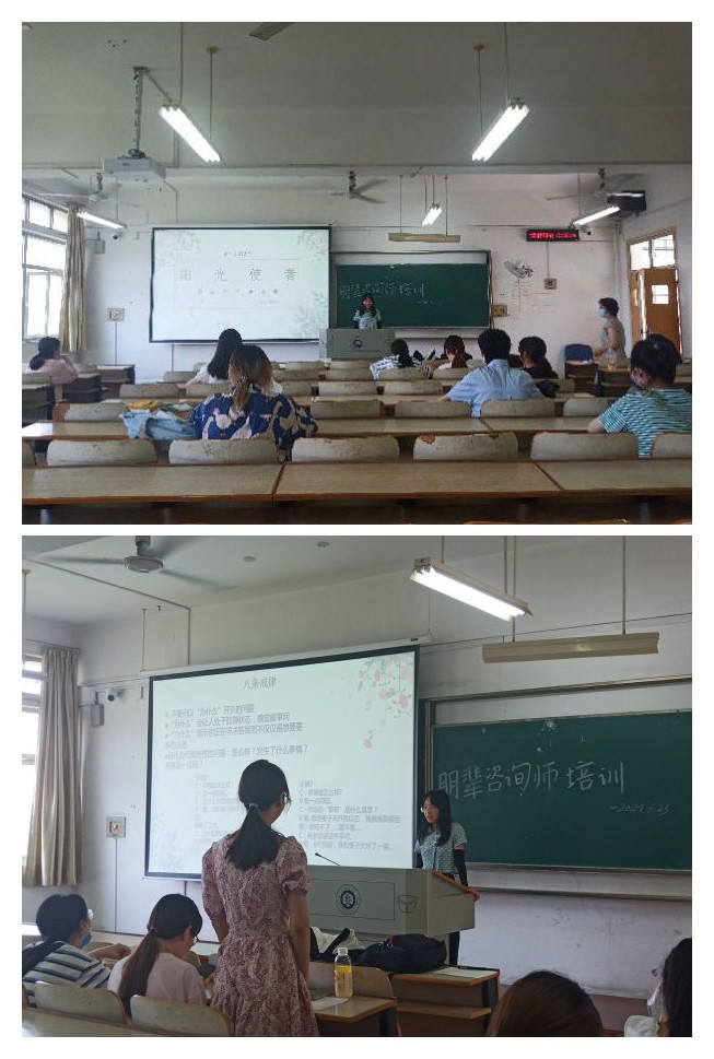 心理工作站依心小屋在综合楼5509召开心理委员培训,本次培训的主题是“阳光使者---朋辈咨询师”,学院心理工作站成员和各班心理委员参加了此次培训。