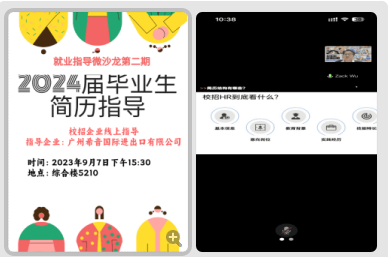 开展第二期就业指导微沙龙活动。广州希音国际进出口有限公司HR吴志刚经理受邀为2020级同学进行求职简历线上指导,学院郭泰辰副书记对同学给与线下指导。